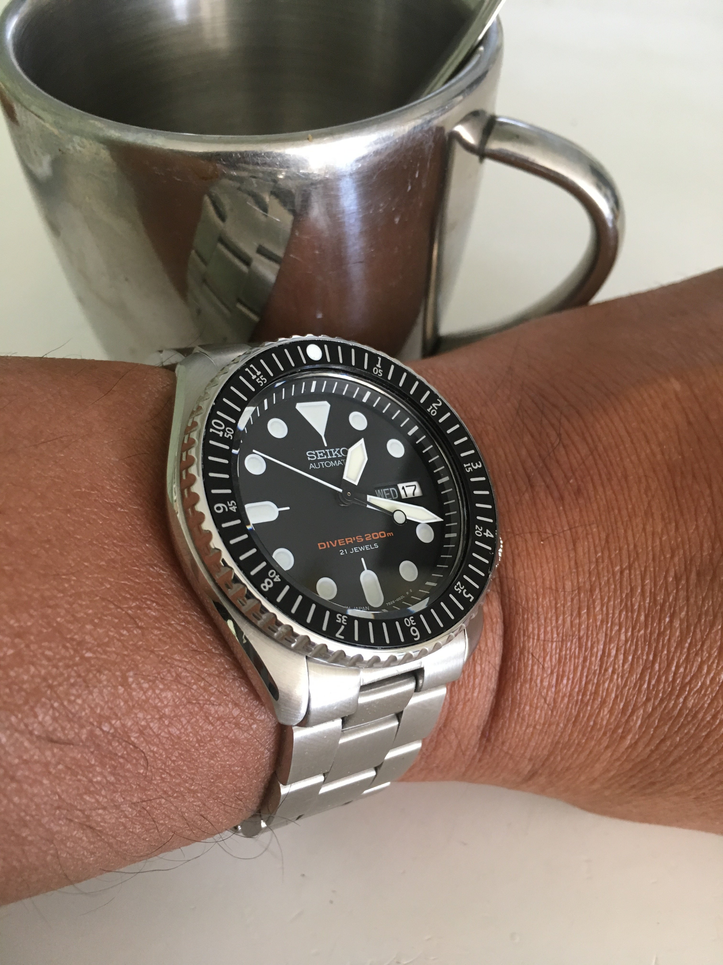 Ik heb even terug een vergelijking gemaakt tussen SKX’en. Daar staan een paar wristshots om mijn 17,5cm pols.