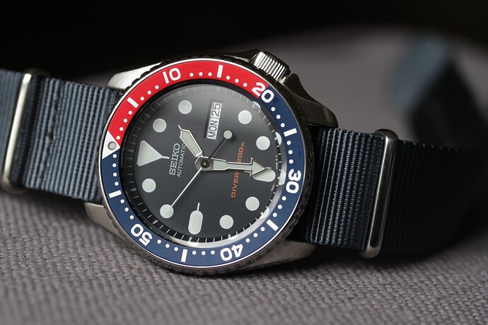 Wat mij opvalt is dat de knurling op de bezel niet lijkt te kloppen op het exemplaar wat je laat zien. Dan heb ik nog nooit een SKX gezien met een cirkel over de centrale lijn, en vervolgens lijken de lume plots me te hoog. Bovendien zitten die lume plots zo scheef als een hoer op de foto die je laat zien.