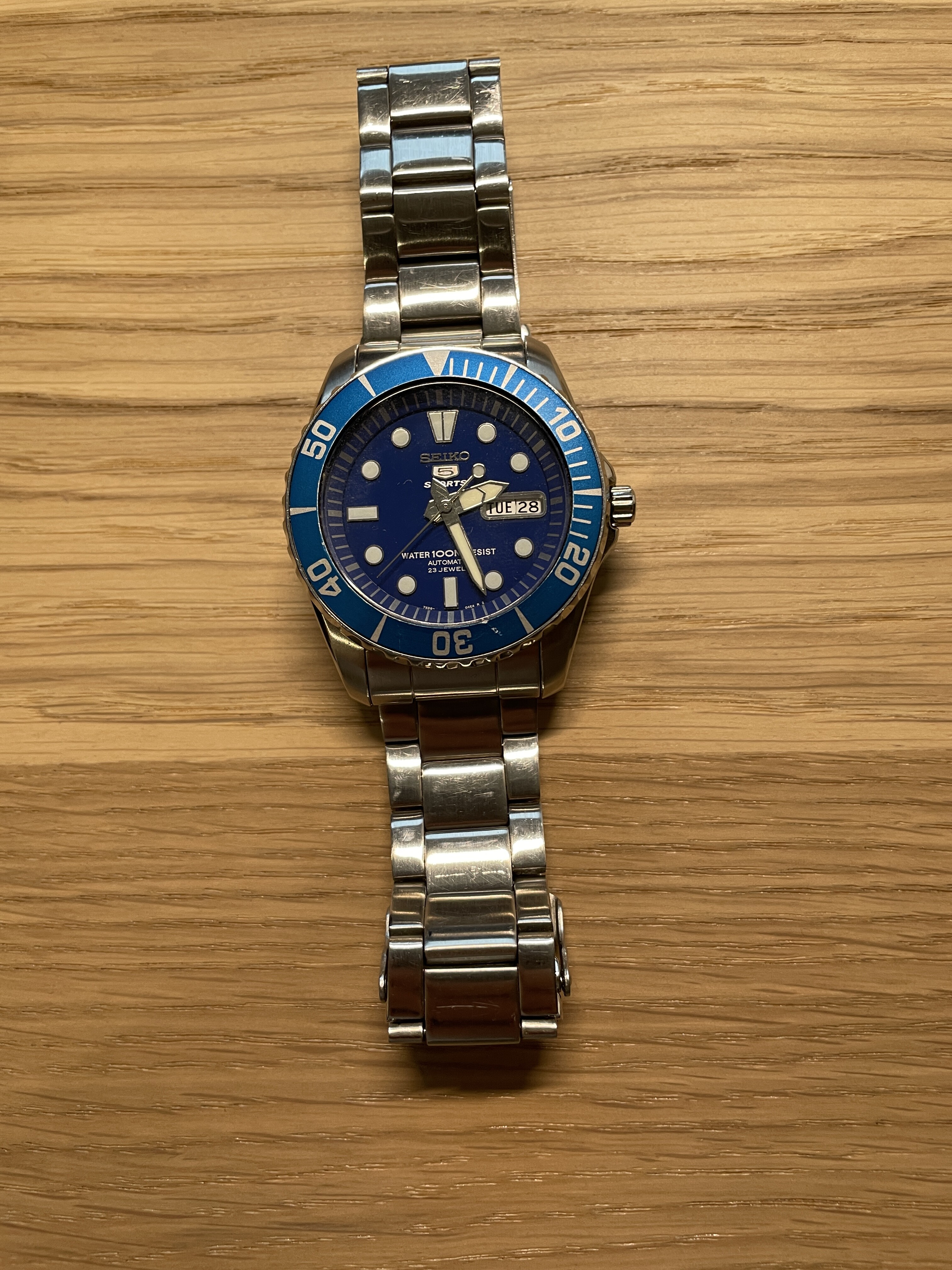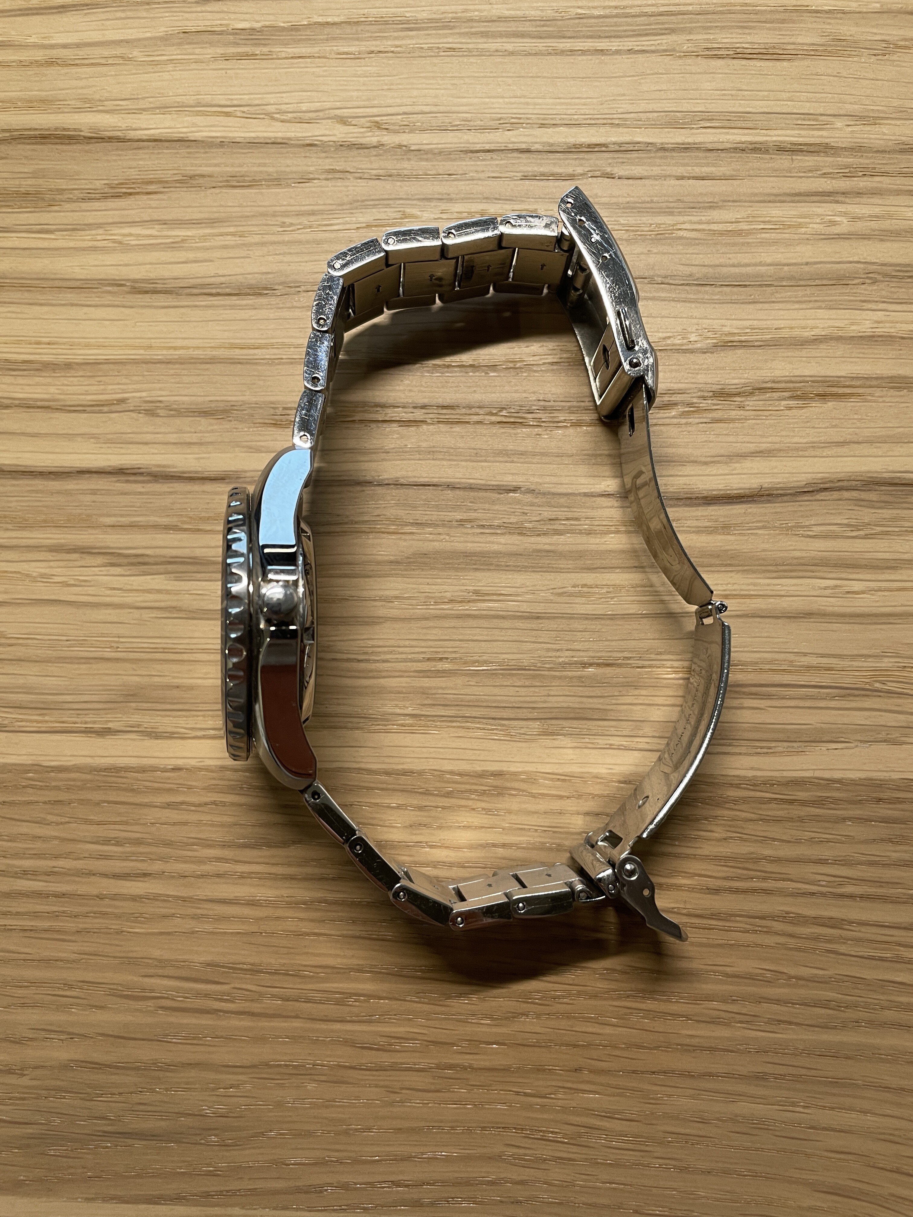 Conditie (krassen, werking etc): netjes met wat krasjes op de band en sluiting. Zie foto voor krasje op bezel insert