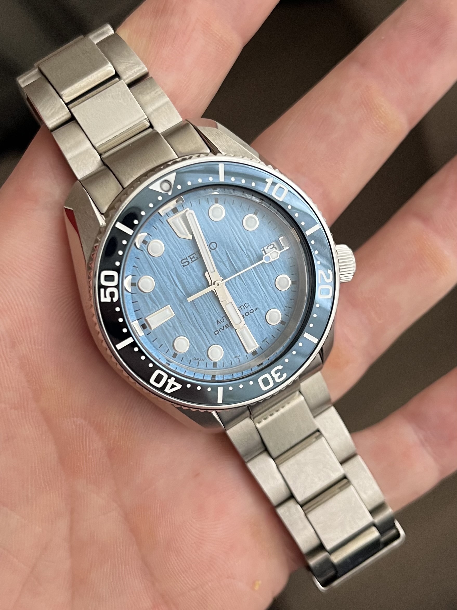 Deze mooie blauwe duiker van Seiko mag naar een andere eigenaar. Ik pak eigenlijk altijd m’n SPB143 en deze SPB299 krijgt daardoor te weinig draagtijd. Uurwerk is begin 2025 onder garantie door Seiko vervangen en sindsdien niet vaak gedragen.