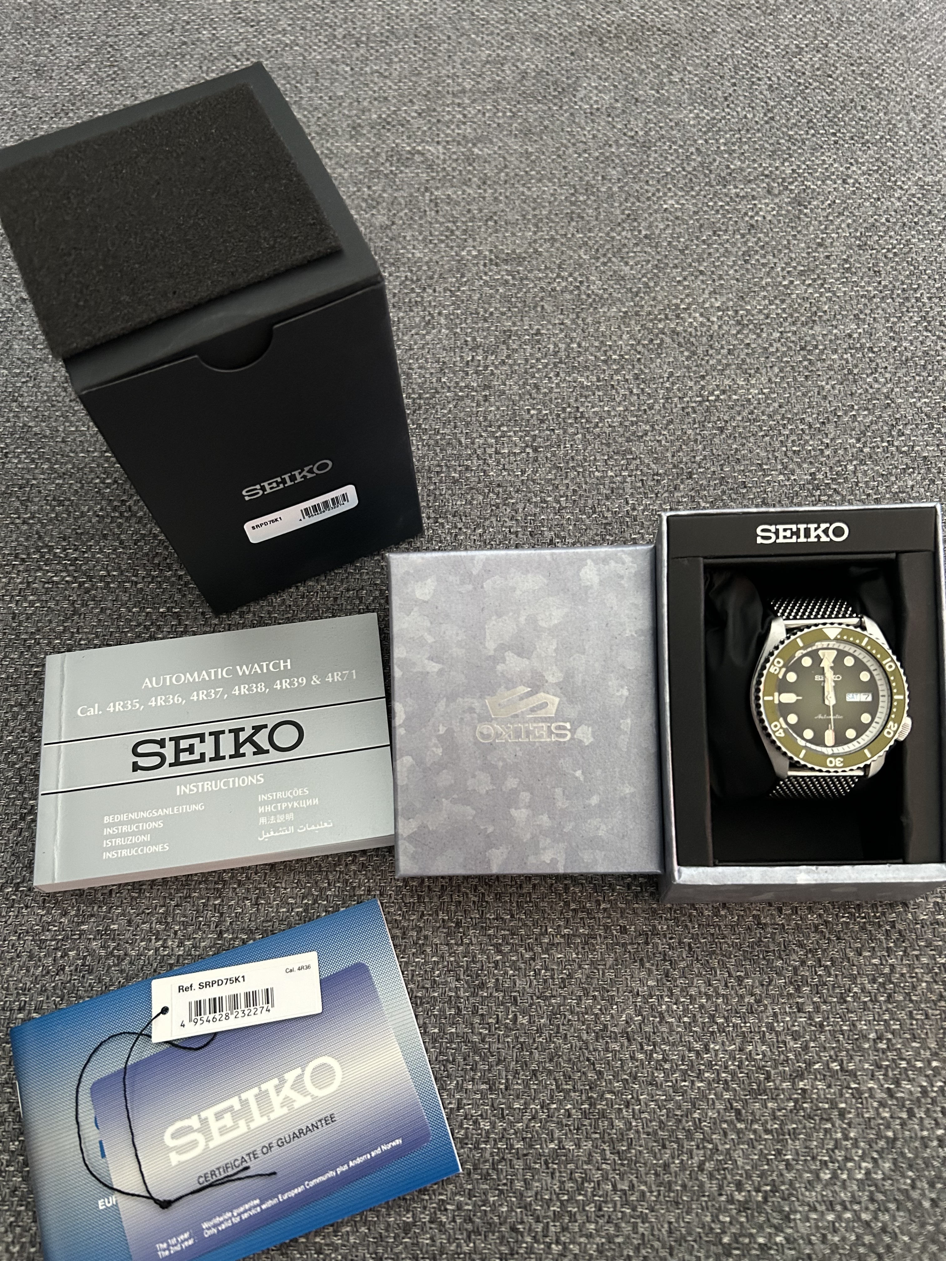 Ik verkoop men Seiko SRPD75K1 omdat ik een Orient Bambino op het oog heb. Deze versie met prachtige olijfgroene plaat en bezel is in perfecte staat.