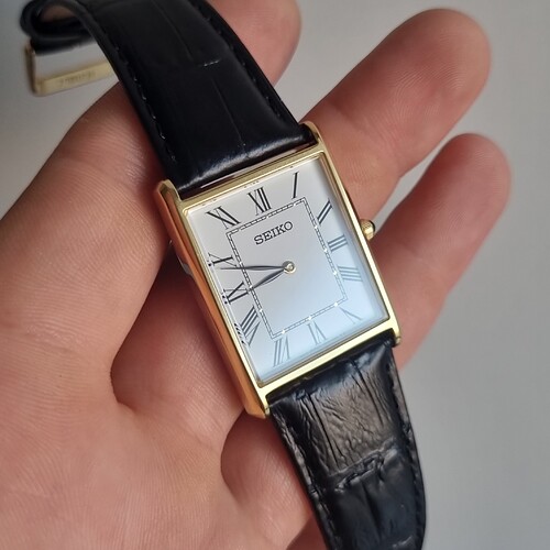 De nieuwe seiko tank op staal.