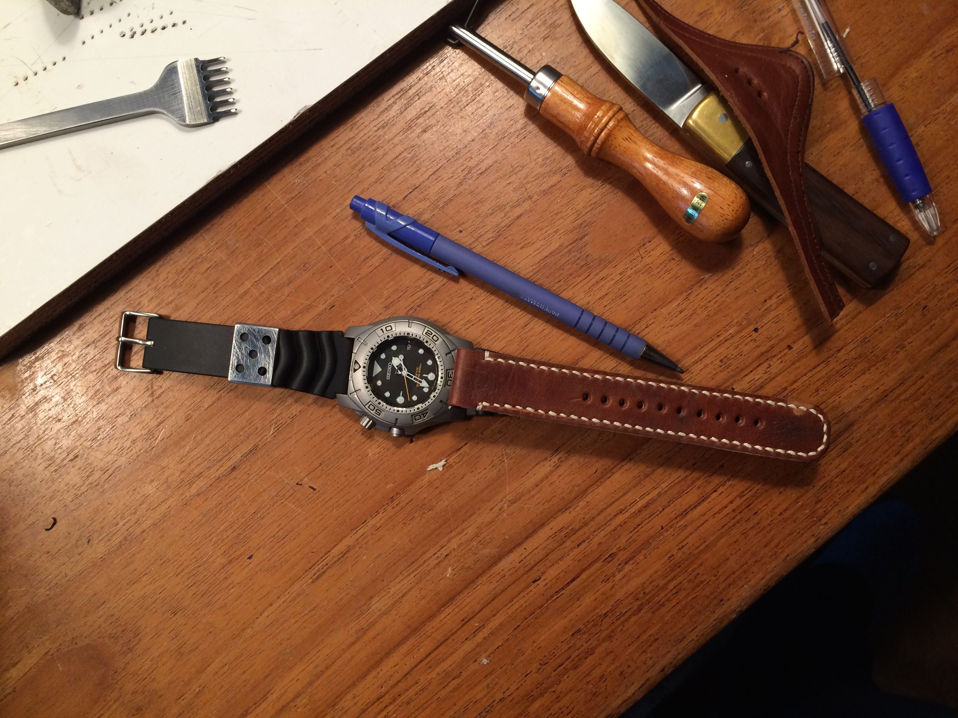 Ik wil graag bij mijn seiko 6309-7040 een leren band. Ik heb flink lopen (af)kijken en dacht: ik probeer het zelf.