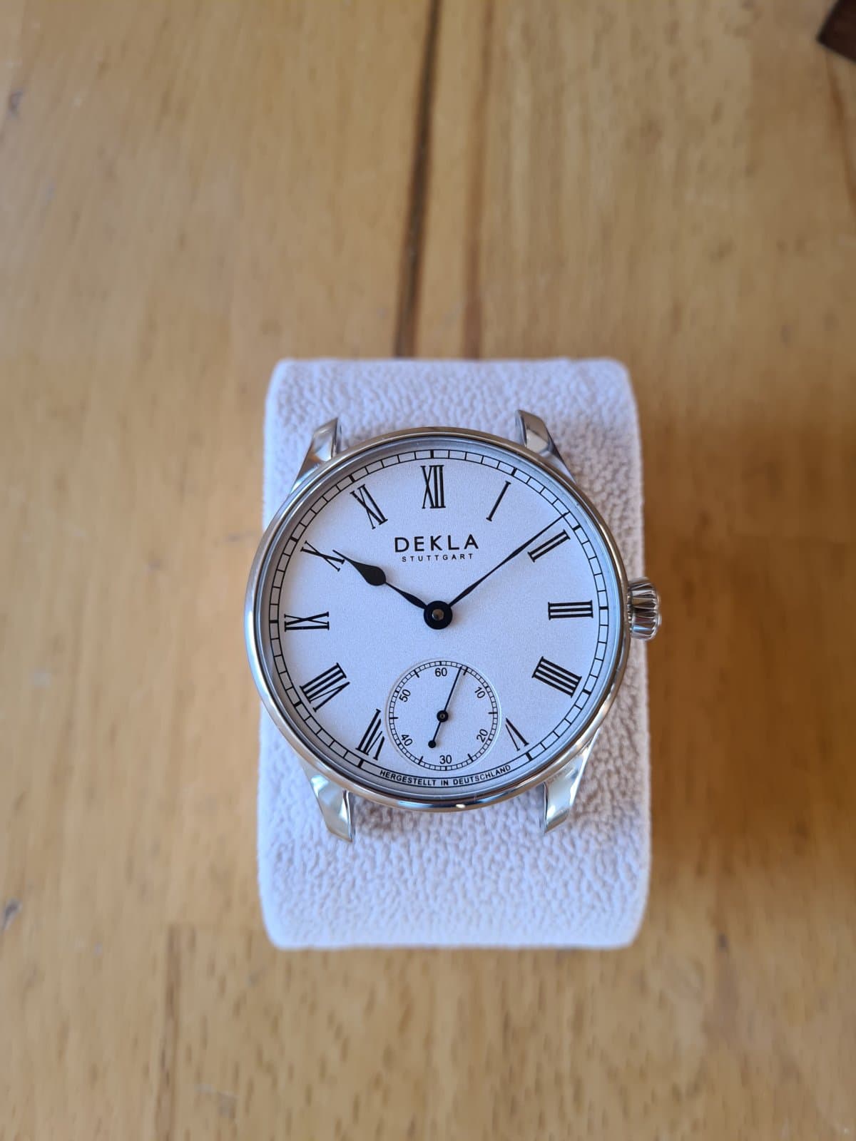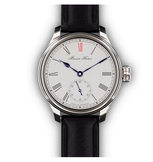 Terugkomend op Buser Freres. Dat is een erg leuk merk en inderdaad ook gemaakt door Yuriy (founder Dekla). Ze maken mooi spul en Buser Freres is bewust opgezet als “goedkopere” lijn. Ik bezit zelf nog een ruthenium dial Dekla en heb de Buser Freres ook in handen gehad. Er is toch wel een verschil in afwerking merkbaar. De dials zijn alleen 921 Sterling bij de Dekla’s, niet bij Buser (hebben wel een grainy effect maar geen solid silver dial). Hun handen zijn overigens erg mooi (ik geloof zelfgemaakt?) maar wel wat vlak. Hij heeft op verzoek eens een thermisch paarse handen voor mij gemaakt, prachtig! Oh ja, en de ghost date hebben we het over gehad