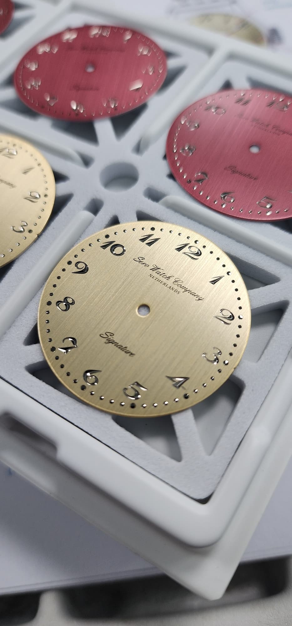 Onderstaand 3 varianten van tekst en technieken van dials die we in handen gehad hebben.