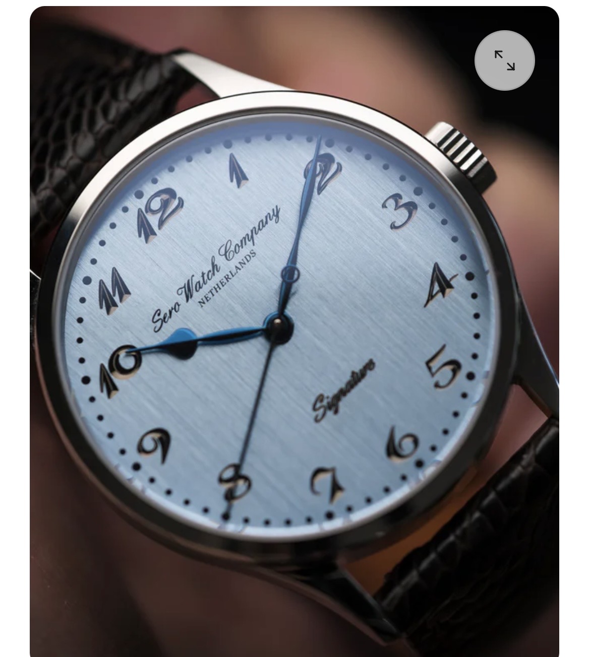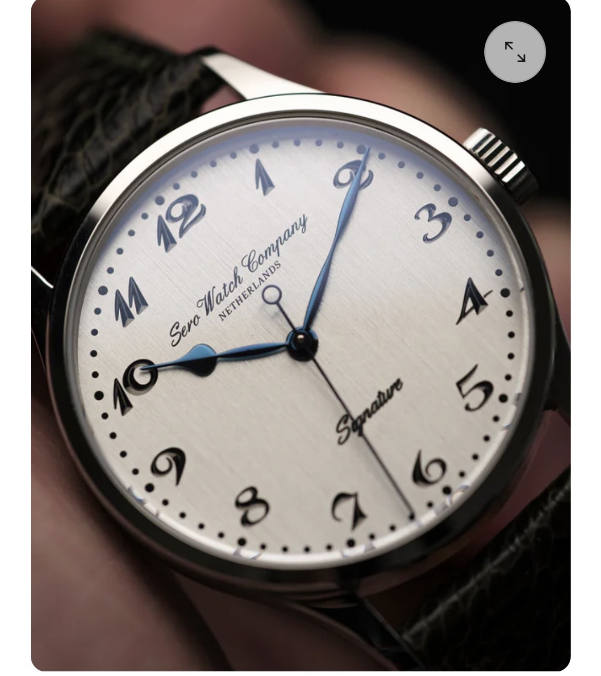 De naam mag van mij best Sero + iets zijn, maar dat Watch Company komt voor mij niet over. Alleen Sero, maar dan in een groter écht zeer zwierige letters misschien. Dat zou ik wel sterker vinden en ook in afmeting dan meer contrast. Ik zou daar dan zeker Nederland (of indien passend, een plaatsnaam) onder zetten. Nu denk ik dat door het onnodige ‘Watch Company’ Nederlands voor Nederland gebruiken discongruent voelt. Als je dan kiest voor het Engels is het The Netherlands, maar je moet hier gewoon niet kiezen voor het Engels. Dus mijn oplossing: Sero lekker groot en zwierig (zonder afleiding te veroorzaken), en voldoende klein voor contrast Nederland eronder, en Signature weg van de plaat.
