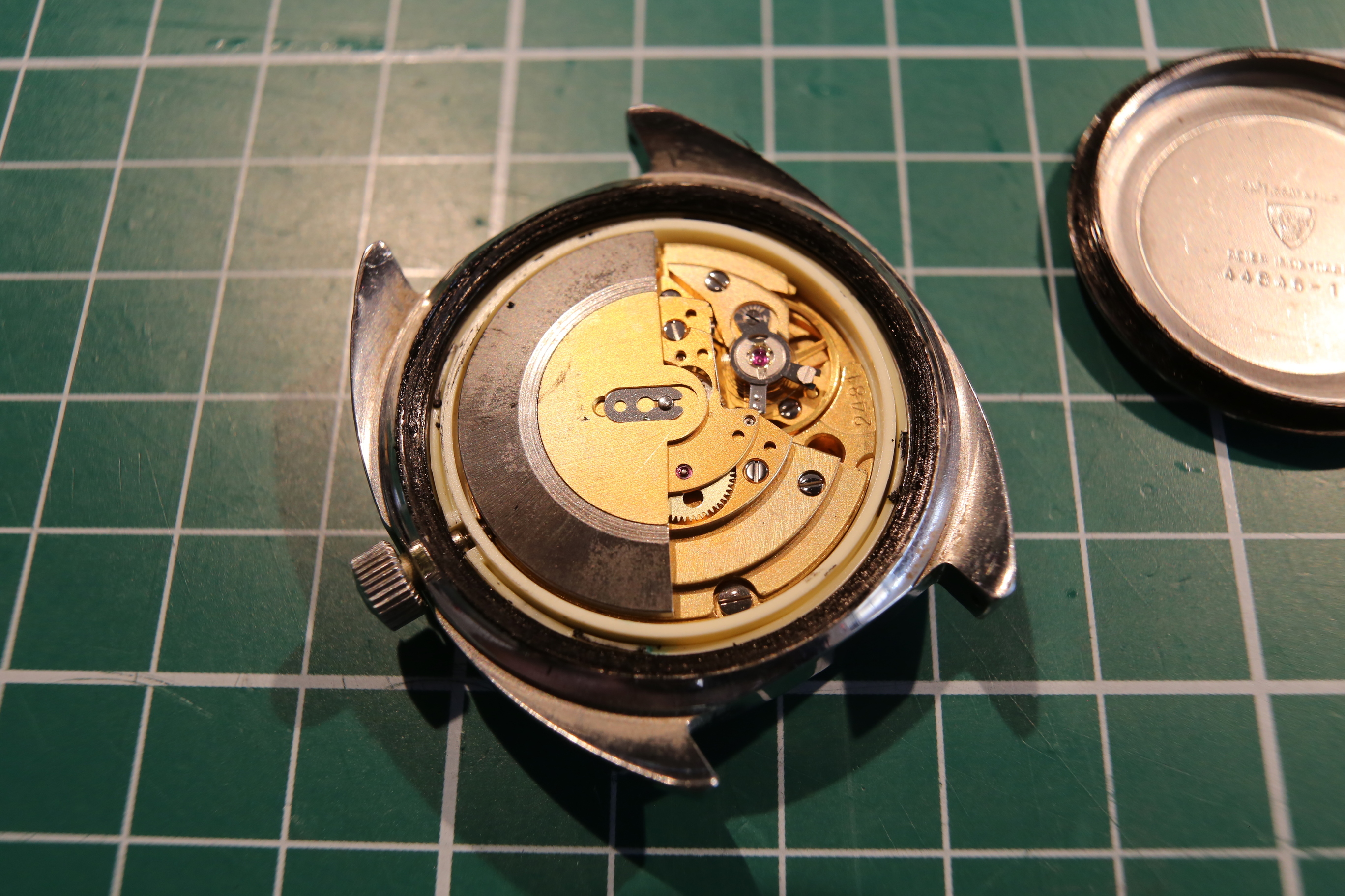 Rotor eraf; serienummer dateert het horloge op 1972.
