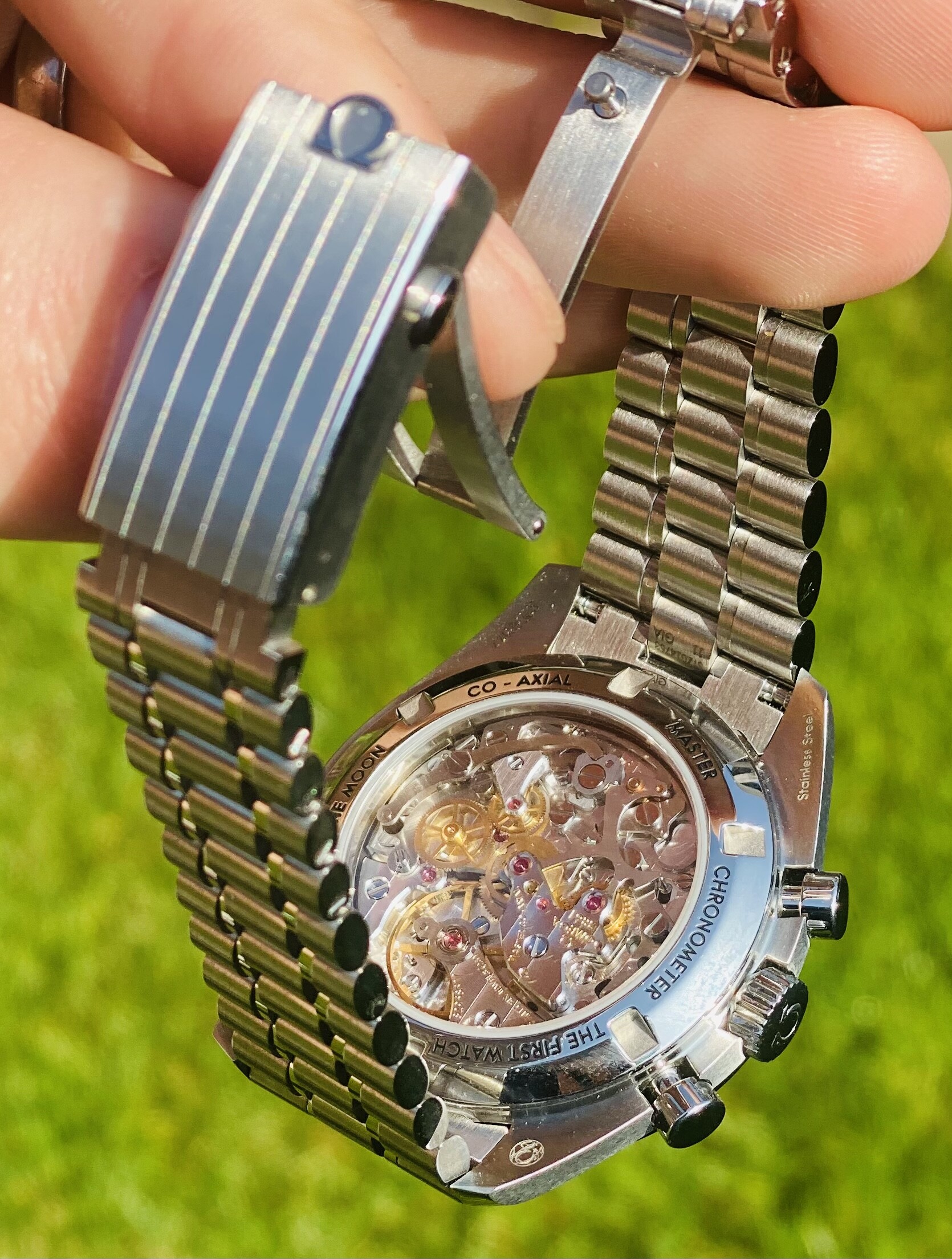 Het merk Rolex past eigenlijk ook helemaal niet bij mij als persoon. Mijn vriendin is dolblij dat ik deze conclusie getrokken heb… Wat ik wel even bij een AD gepast heb, is een Speedmaster Professional, zat als gegoten!! Was eentje met Hesalite, de Saffier was net verkocht.