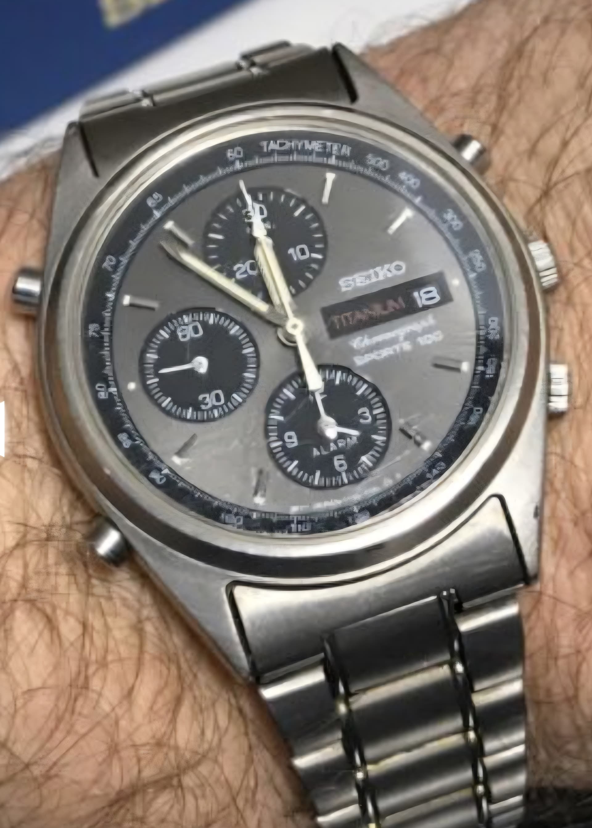 M’n eerste serieuze horloge, een Seiko 7T32-F069, gekocht ruim 40 jaar geleden voor ca 600 gulden. Dat was toen heel veel geld, zeker voor mij. Helaas niet meer in bezit, want ging stuk en helaas niet reparabel volgens de juwelier/horligemaker.