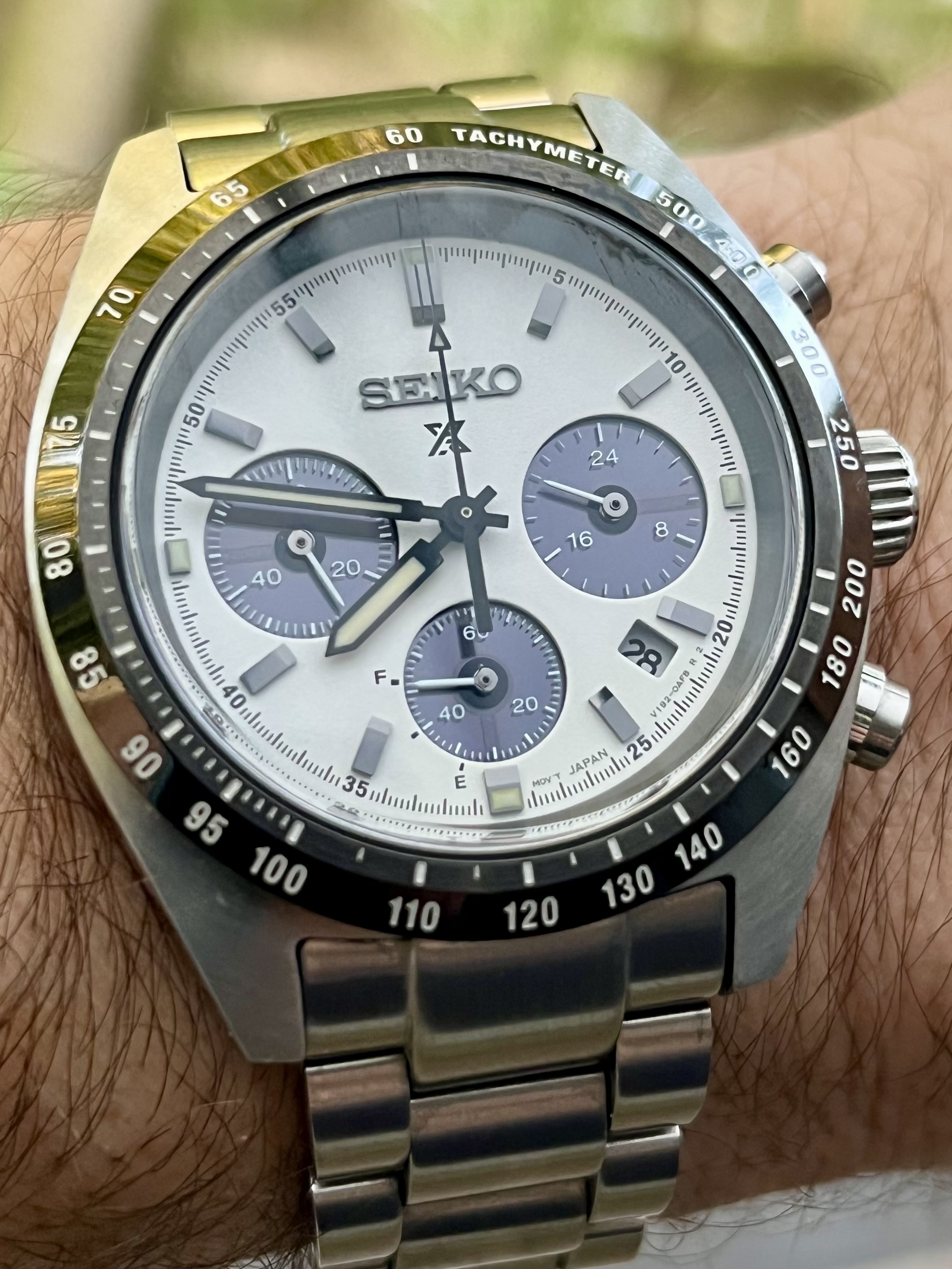 Ik geloof een week of drie. En ik moest nog wat inklaringskosten betalen, 22,06. Draag het bandje nu al een week of drie. Echt véél prettiger dan de originele stalen band. Die kreeg ik nooit goed op maat, ook niet met de Uncle Seiko half link en andere clasp. Ga hierdoor het horloge veel vaker dragen verwacht ik.