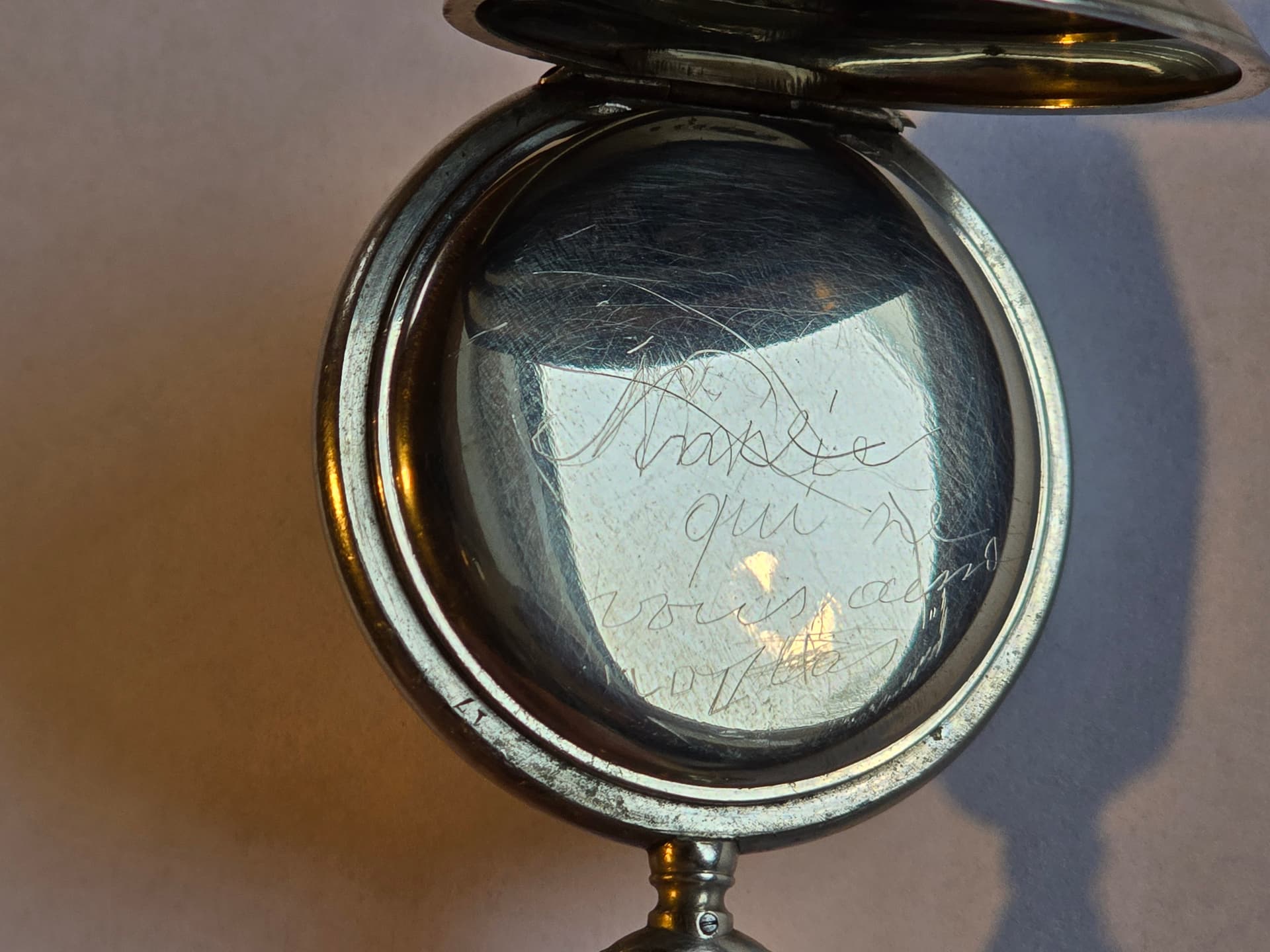 Er was iets met dat “argent” en dat symbooltje. Ooit gevonden maar nu niet meer. Als iemand het weet? Fine Silver lijkt te duiden op een import kast met hoog gehalte zilver. Loopt goed. Glas wel bekrast.