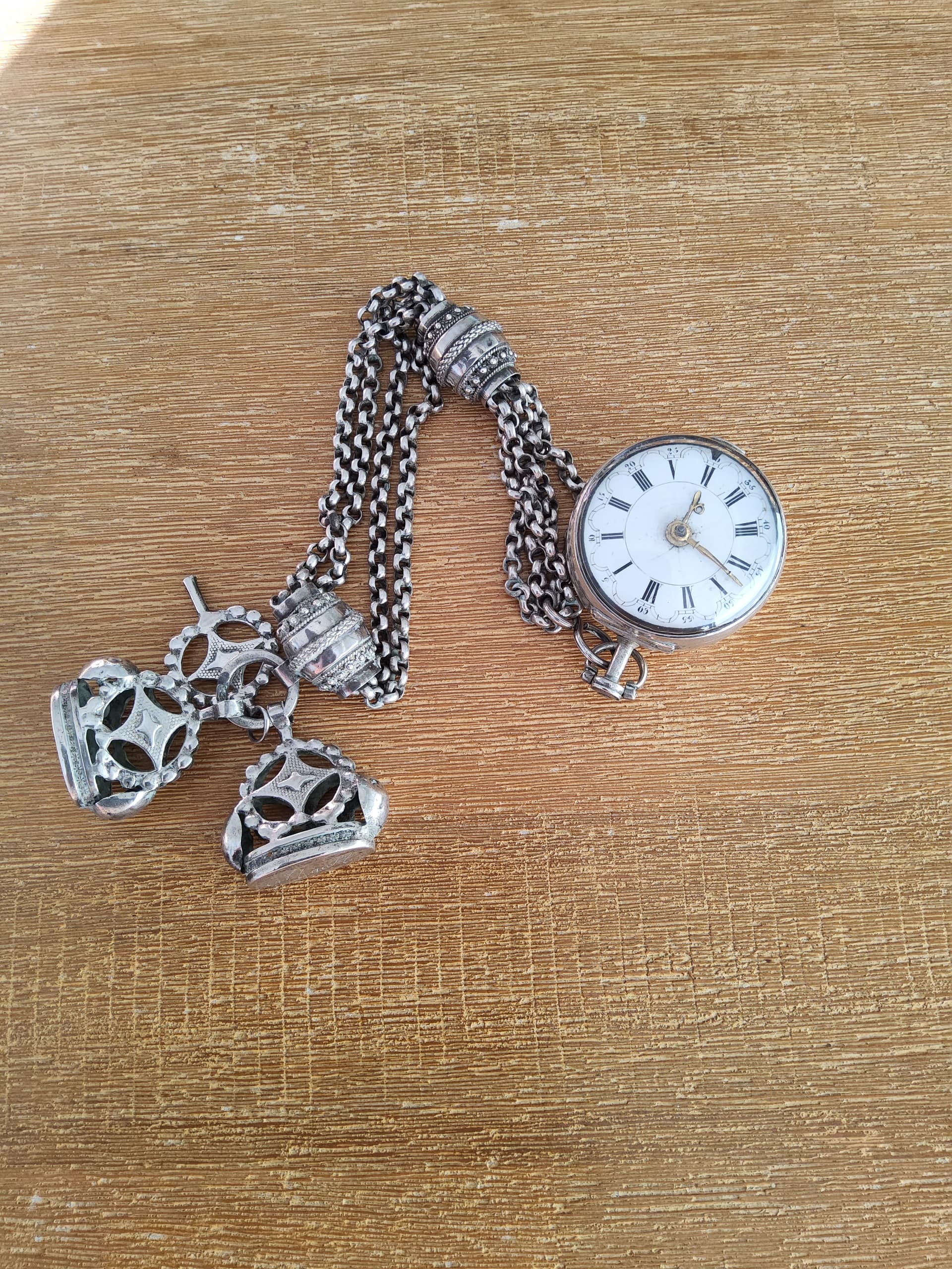 Dit horloge met de chatelaine erbij is zeker een fraaie aanwinst in de collectie.