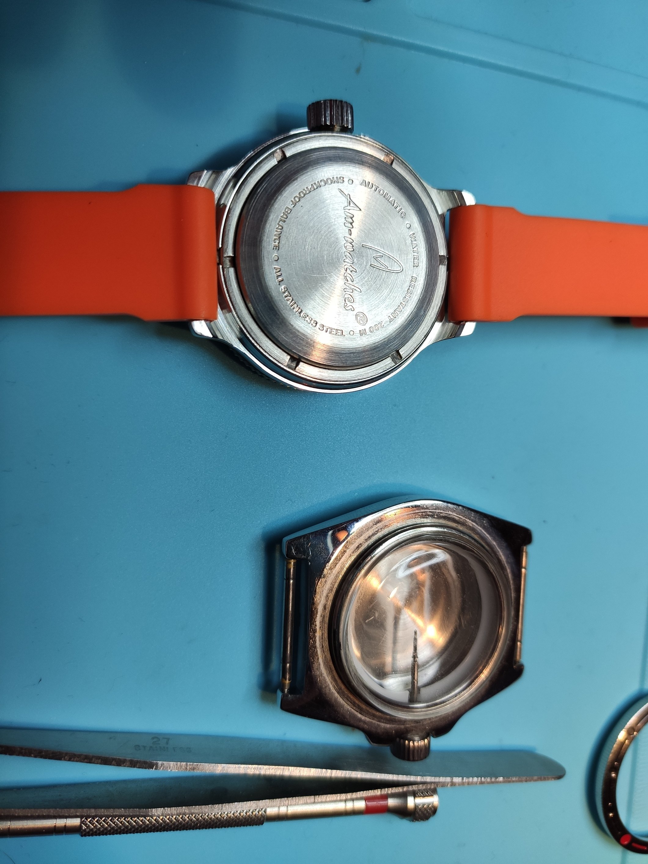 Laatst kocht ik een Vostok AM-diver in een 110 kast. Die kast beviel maar matig. Toen kon ik een 420 kast overnemen van @andrepost. Wel maar met een lug wijdte van 18mm waar ik zo mijn bedenkingen bij had. Toch een bandje besteld en vandaag de AM-diver overgezet naar de 420 kast. Al met al lekker bezig geweest…