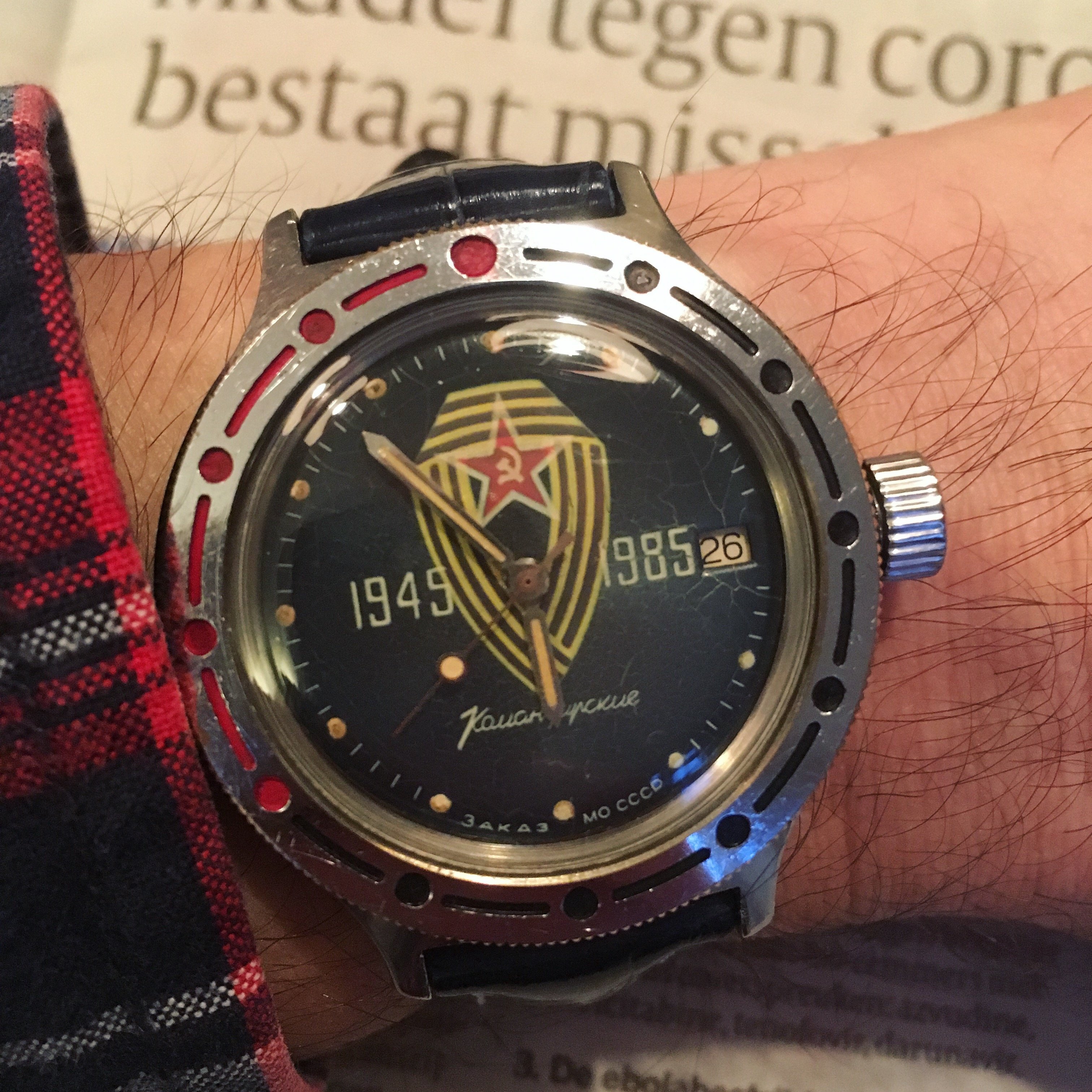 Vostok Amphibia 1945-1985 (alhoewel er Komandirskie op de wijzerplaat staat) met een issued 2434 uurwerk met hacking.