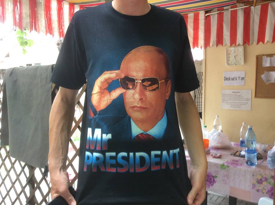Ik heb zelf een heel mooi Poetin t-shirt op de kop getikt in Kirgizië, maar durf 'm eigenlijk nooit te dragen.