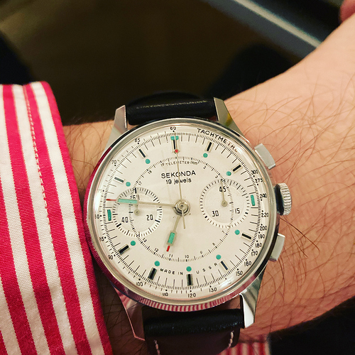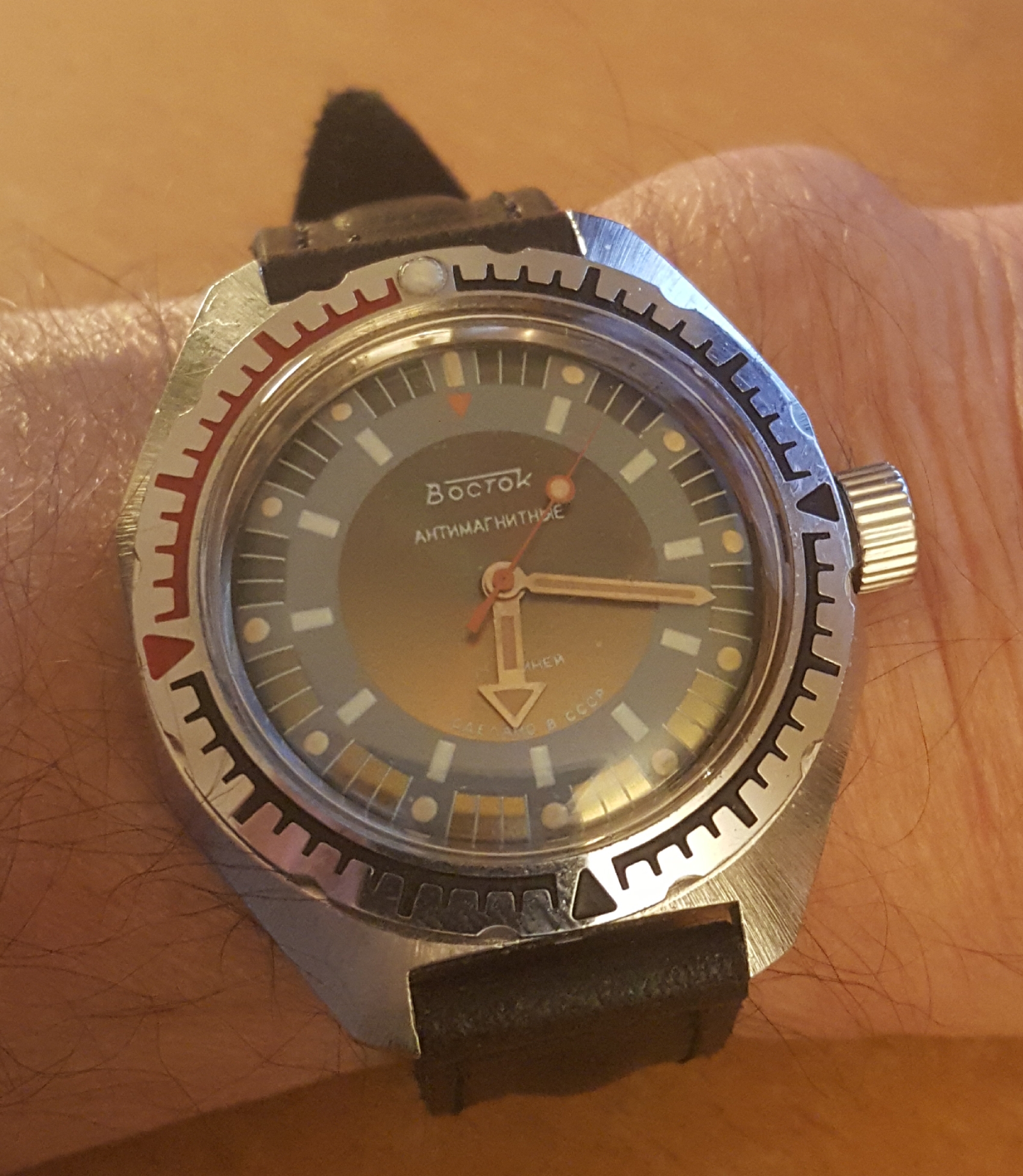 Ja , ik heb het meest Vostok om , Poljot ben ik heel zuinig mee net als me Strela , die ik straks weer om doe b.v .die heb ik het vaakst om , me civilian .