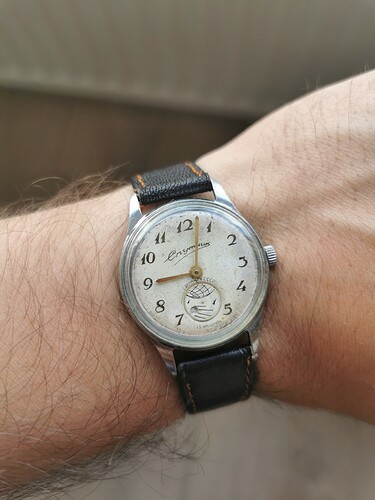 Zal nooit vergeten dat er een Poljot Sturmanskie op de houten vloer kletste van zo’n 2,5 meter hoogte. Ik ben niet zo’n reus maar ik liep de trap op en bandje schoot los. Hij liep nog prima, maar 1 pusher was defect. Daar op terechtgekomen denk ik. Prima weer gemaakt door Hans.