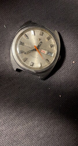 Zal nooit vergeten dat er een Poljot Sturmanskie op de houten vloer kletste van zo’n 2,5 meter hoogte. Ik ben niet zo’n reus maar ik liep de trap op en bandje schoot los. Hij liep nog prima, maar 1 pusher was defect. Daar op terechtgekomen denk ik. Prima weer gemaakt door Hans.