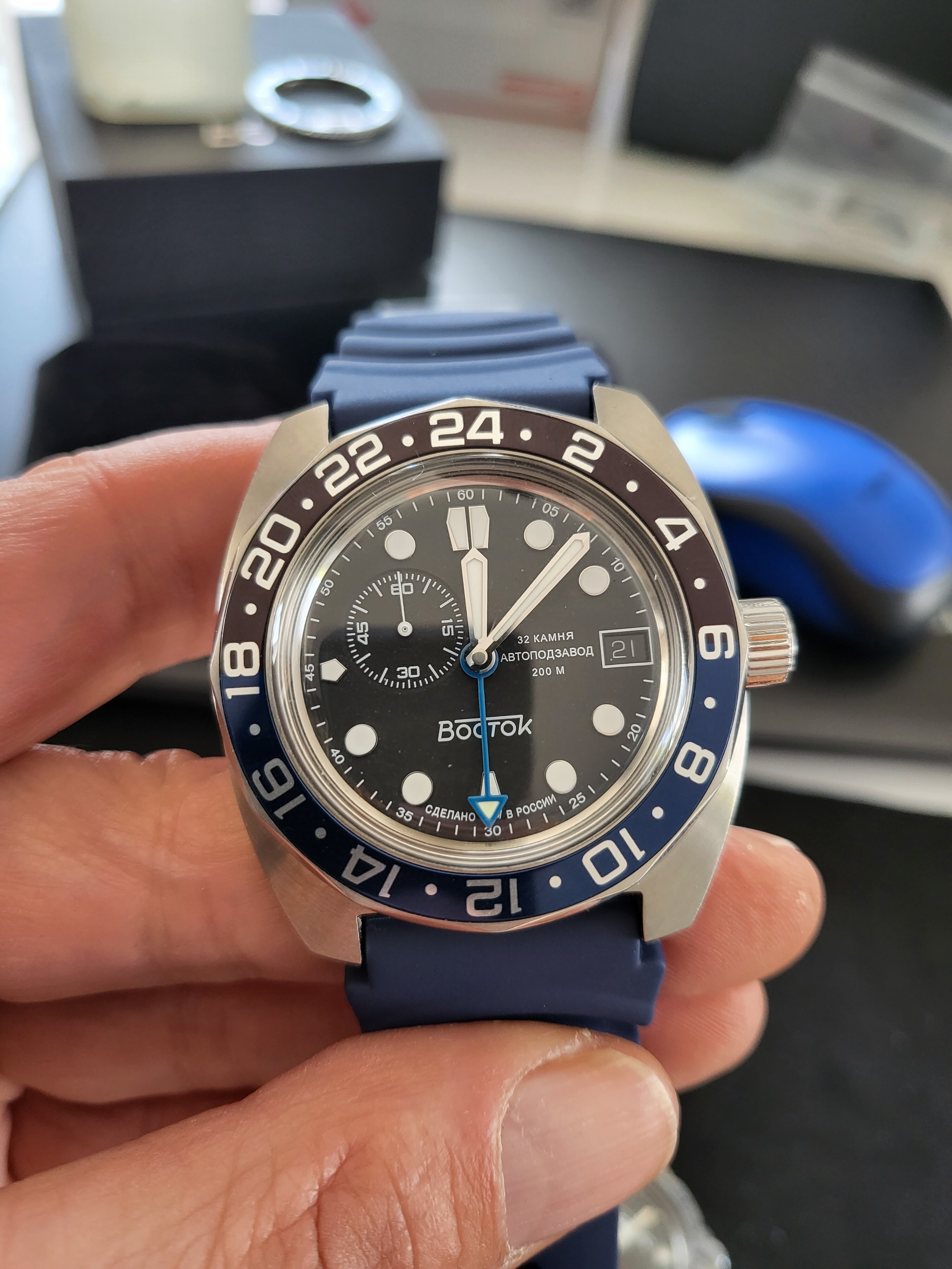 Ga een beetje opruimen hier en biedt hierbij een Vostok GMT aan, welke ik hier een maand geleden heb overgenomen, maar eerlijk gezegd nog nooit gedragen heb. Loopt perfect. Heb er voor mijn gevoel teveel voor betaald en aangezien winst geen oogmerk is voor mij, kan deze voor een zeer schappelijke prijs naar een liefhebber hier. ( anders gaat ie naar het blauw toe)
