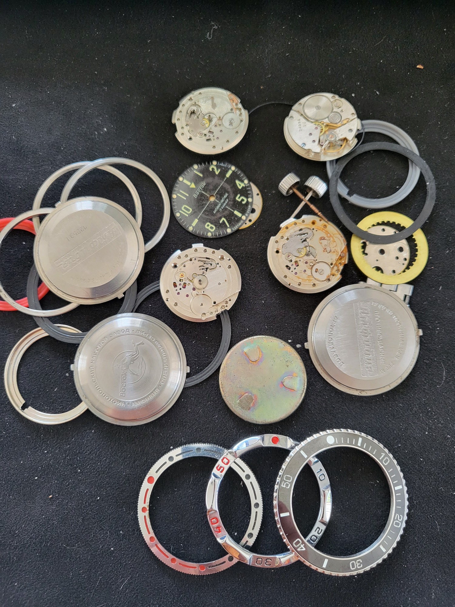 Bij dit horloge komt ook nog een vintage vostok met heel veel losse onderdelen die vast nog gebruikt kunnen worden. Horloge loopt, maar zou misschien een service niet afslaan.