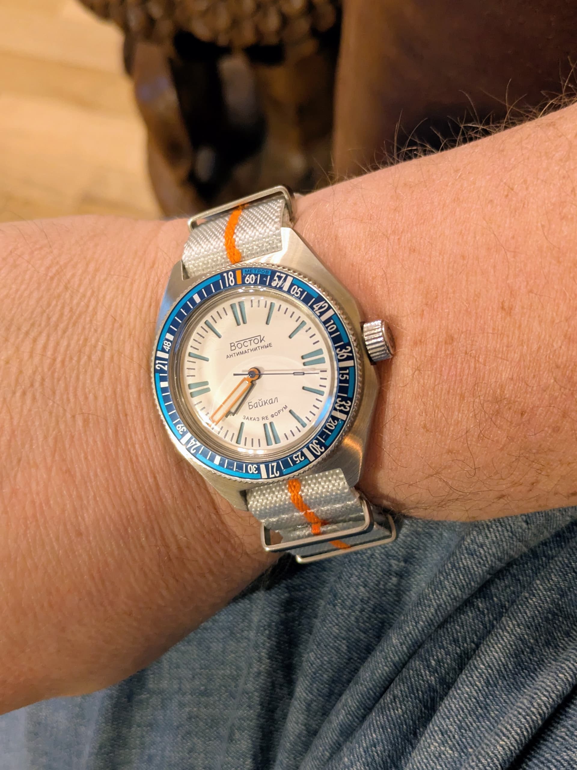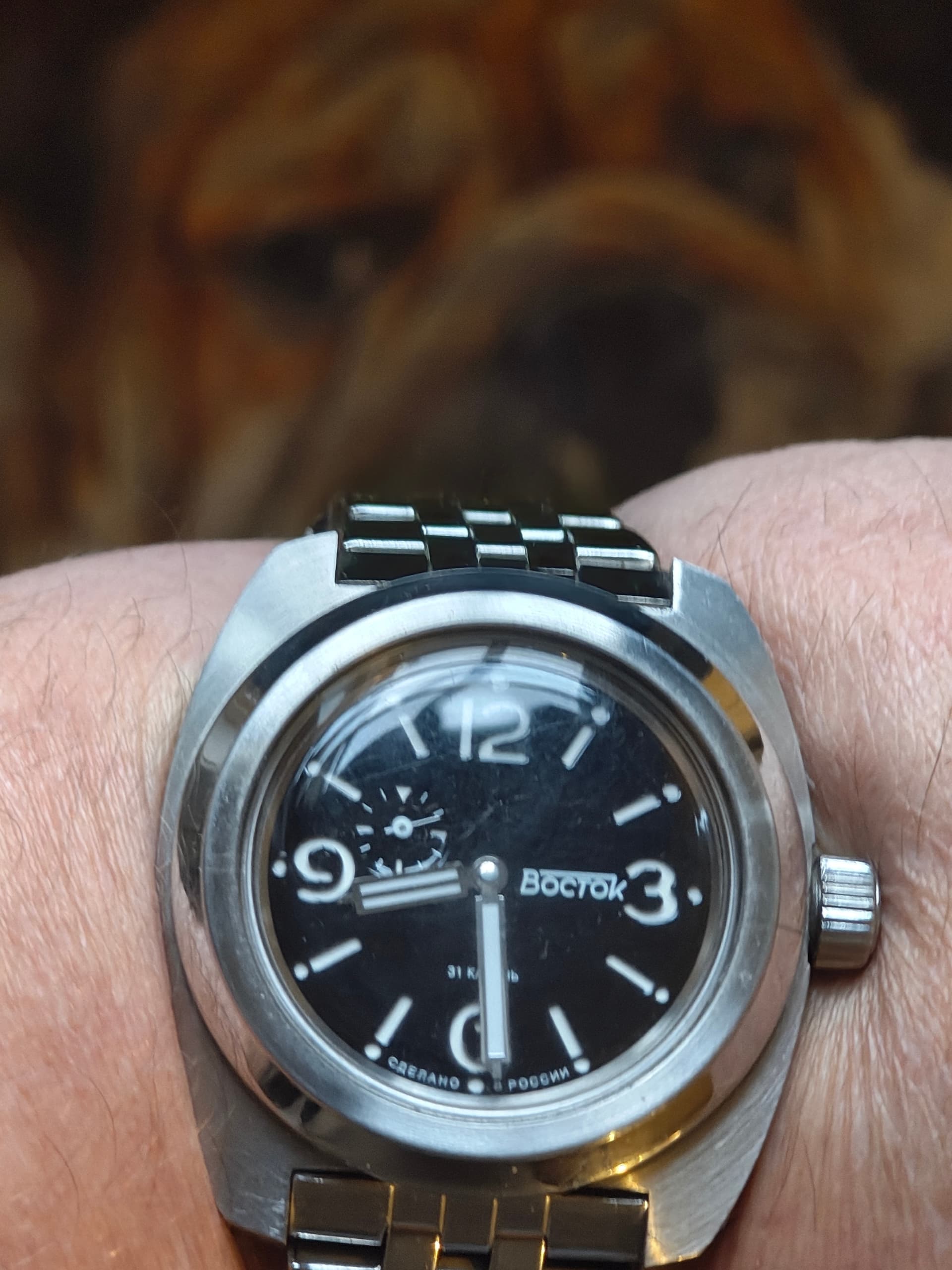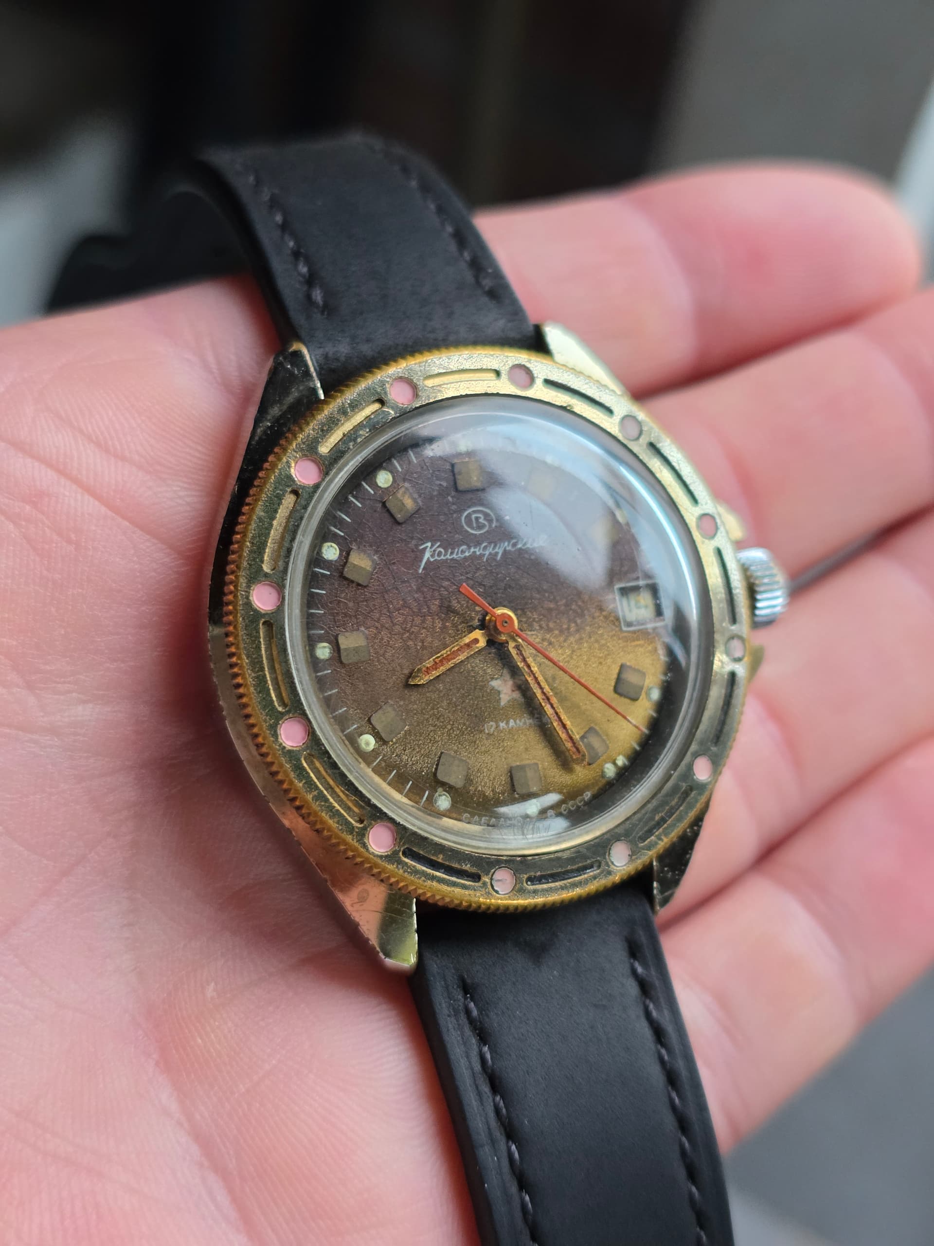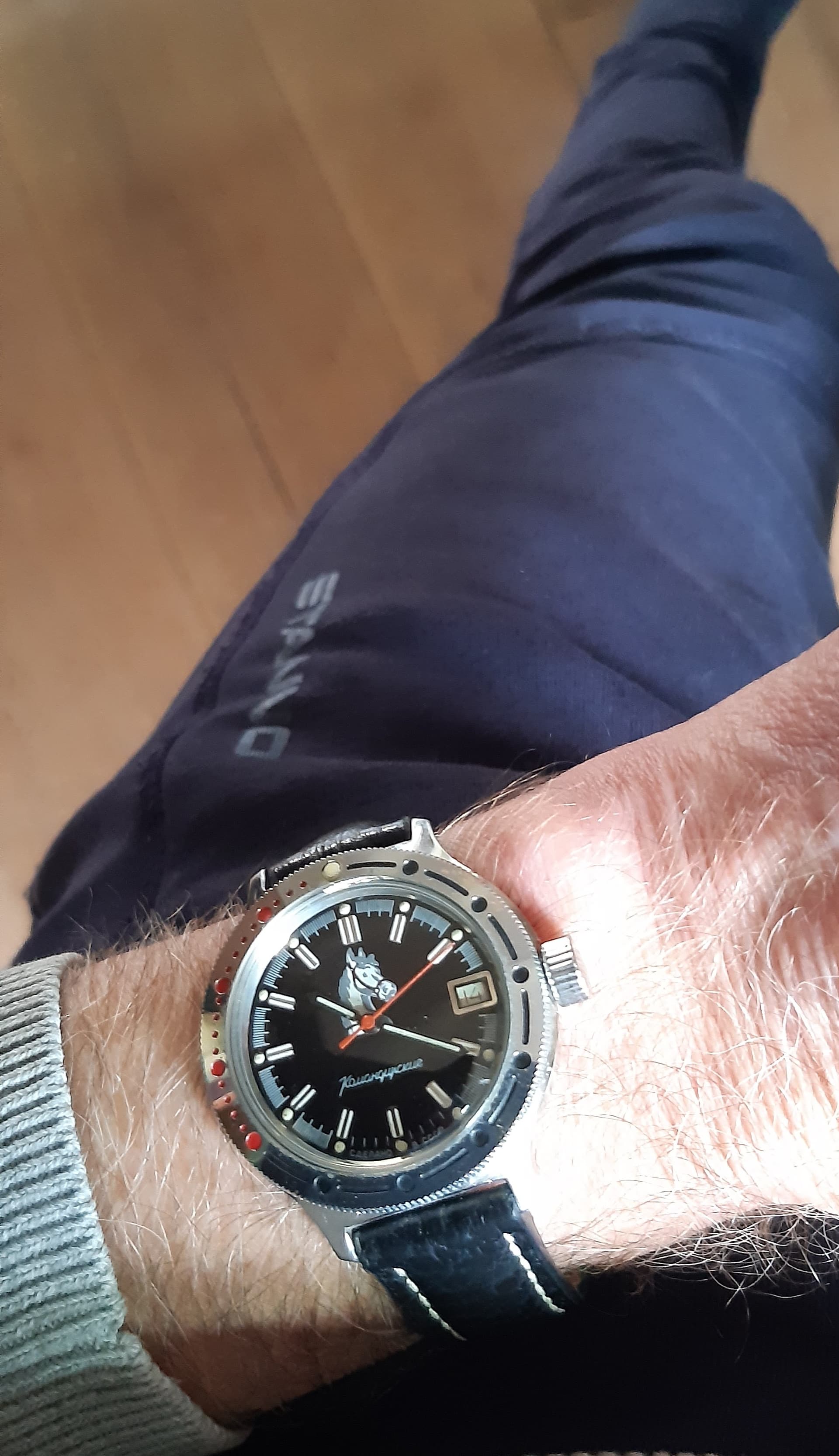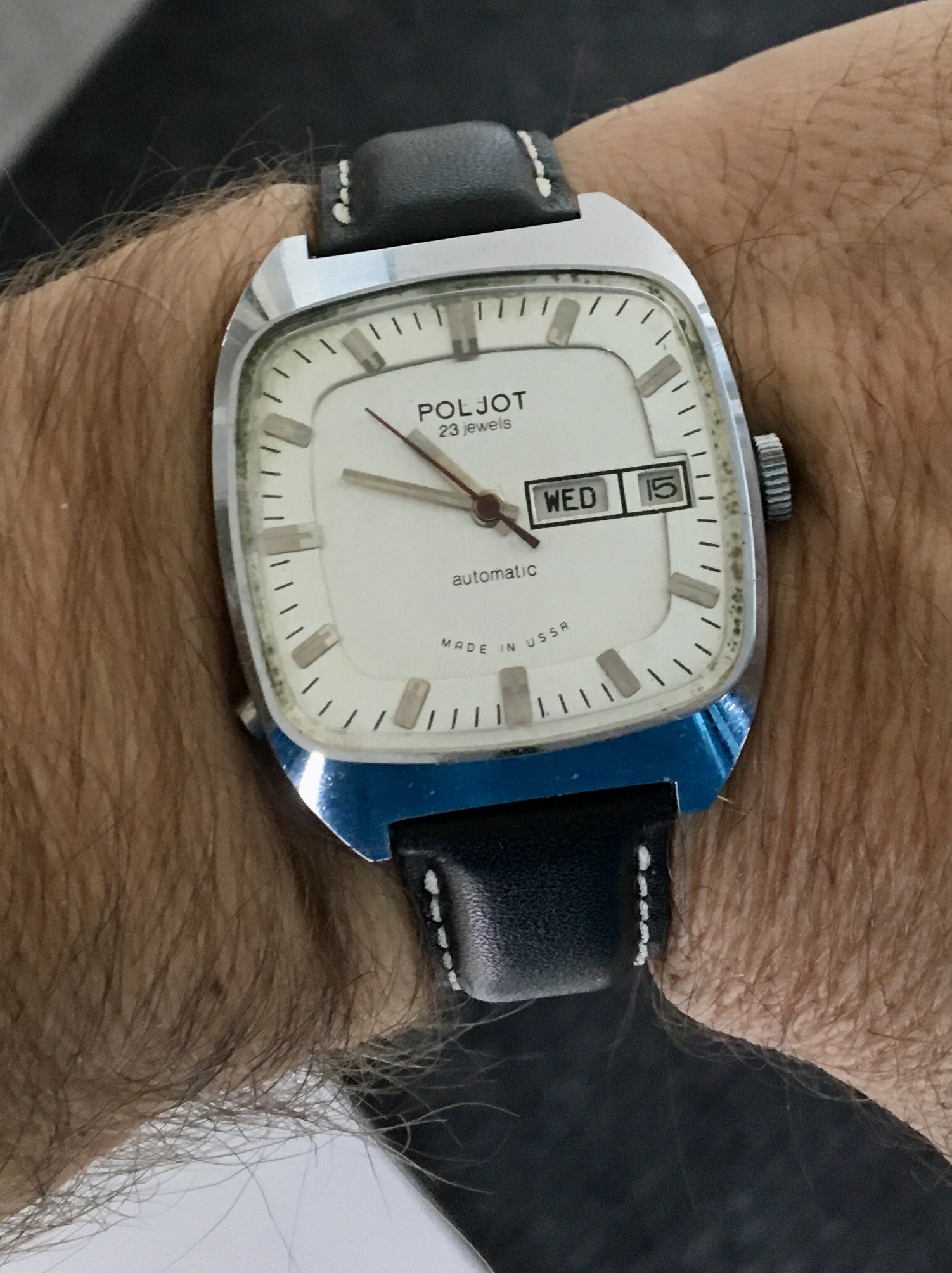 Ooit eens op de beurs voor weinig kunnen kopen. Liep totaal niet maar na een service floreert deze Poljot al jaren ongenaakbaar.
