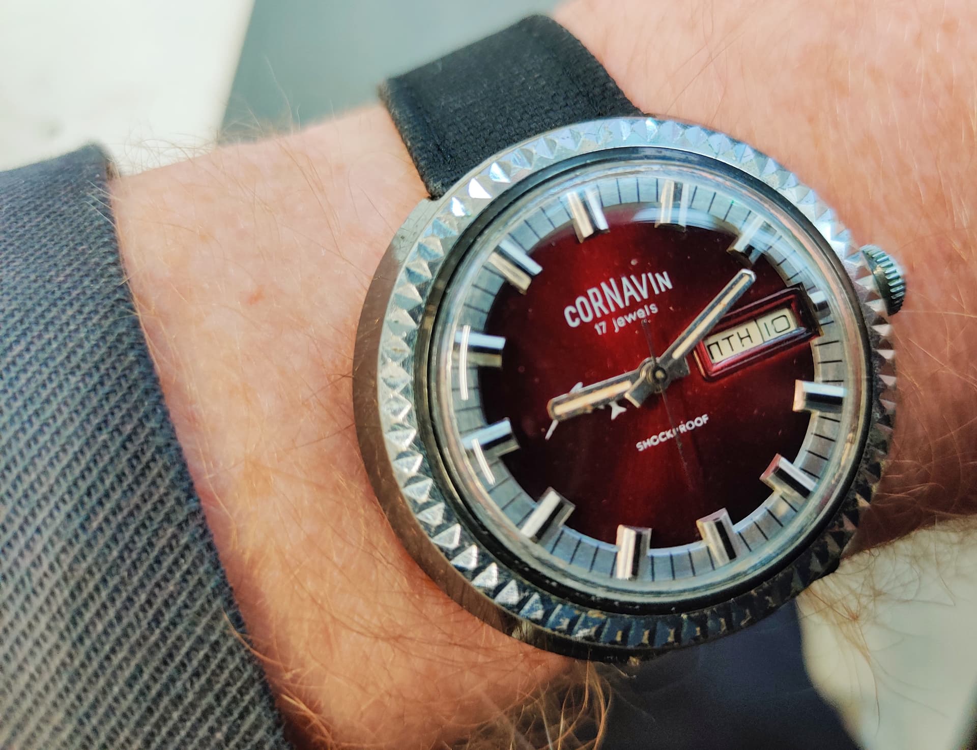 Beetje beroerde foto maar het is even niet anders. Horloge gaat voorlopig naar de rechter pols maar met links kan ik nog geen foto maken.