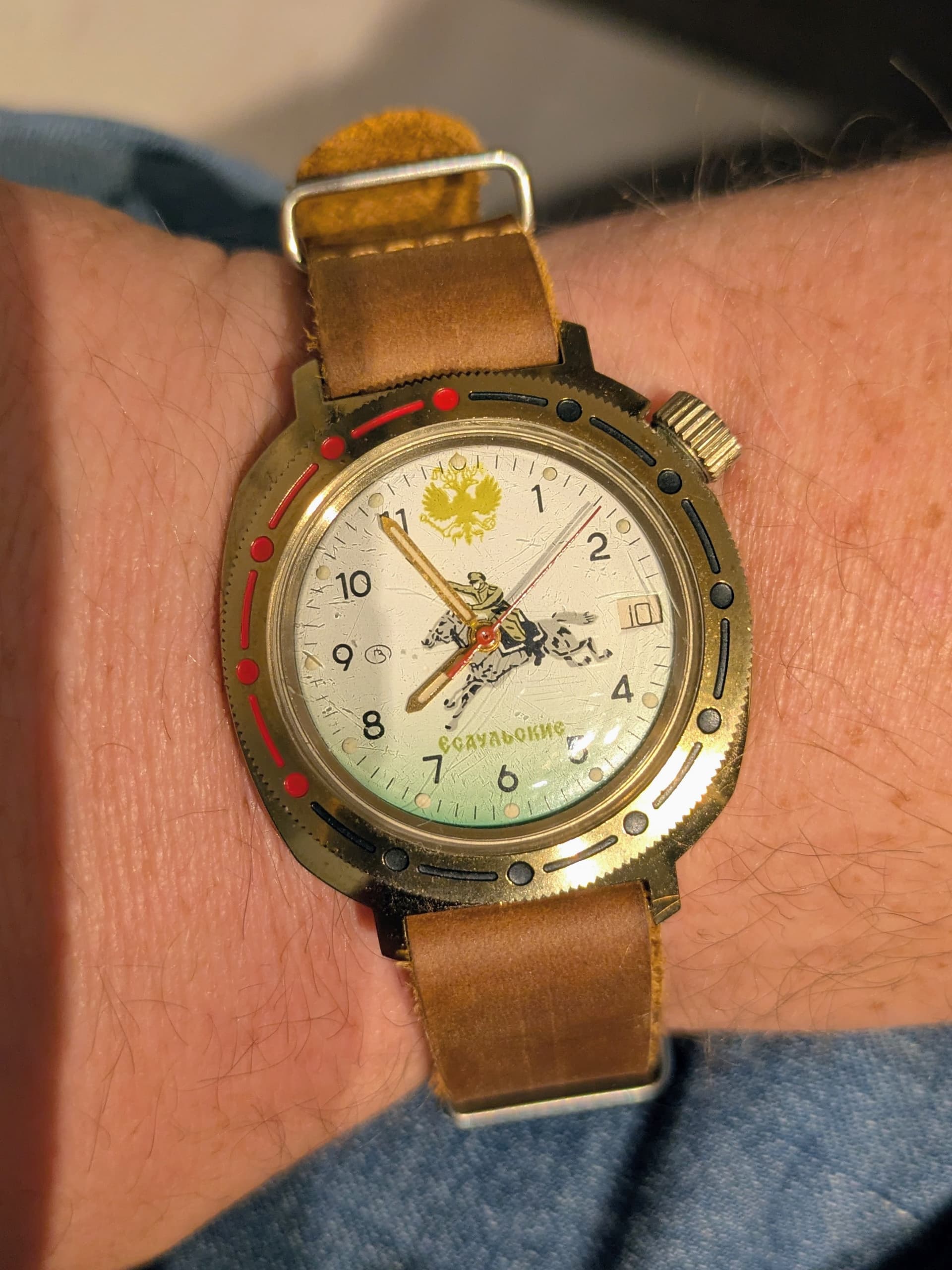 On-topic: gewisseld naar een andere Vostok, dat rubber was net te strak voor mijn rechter pols. Nu lekker comfy, extra lange lederen nato.