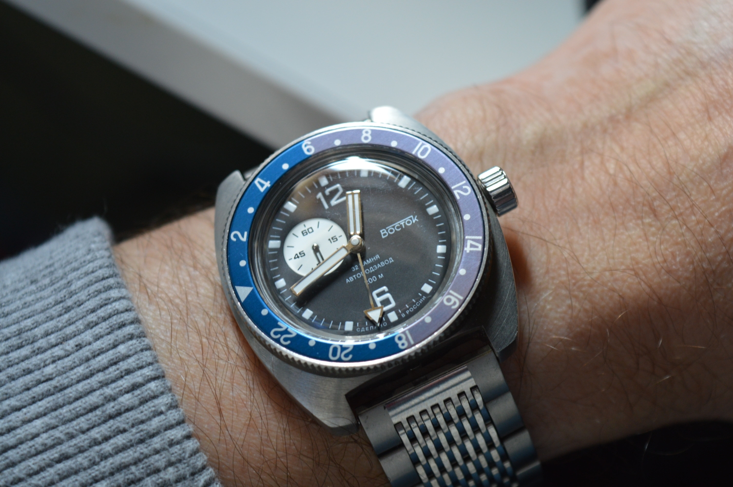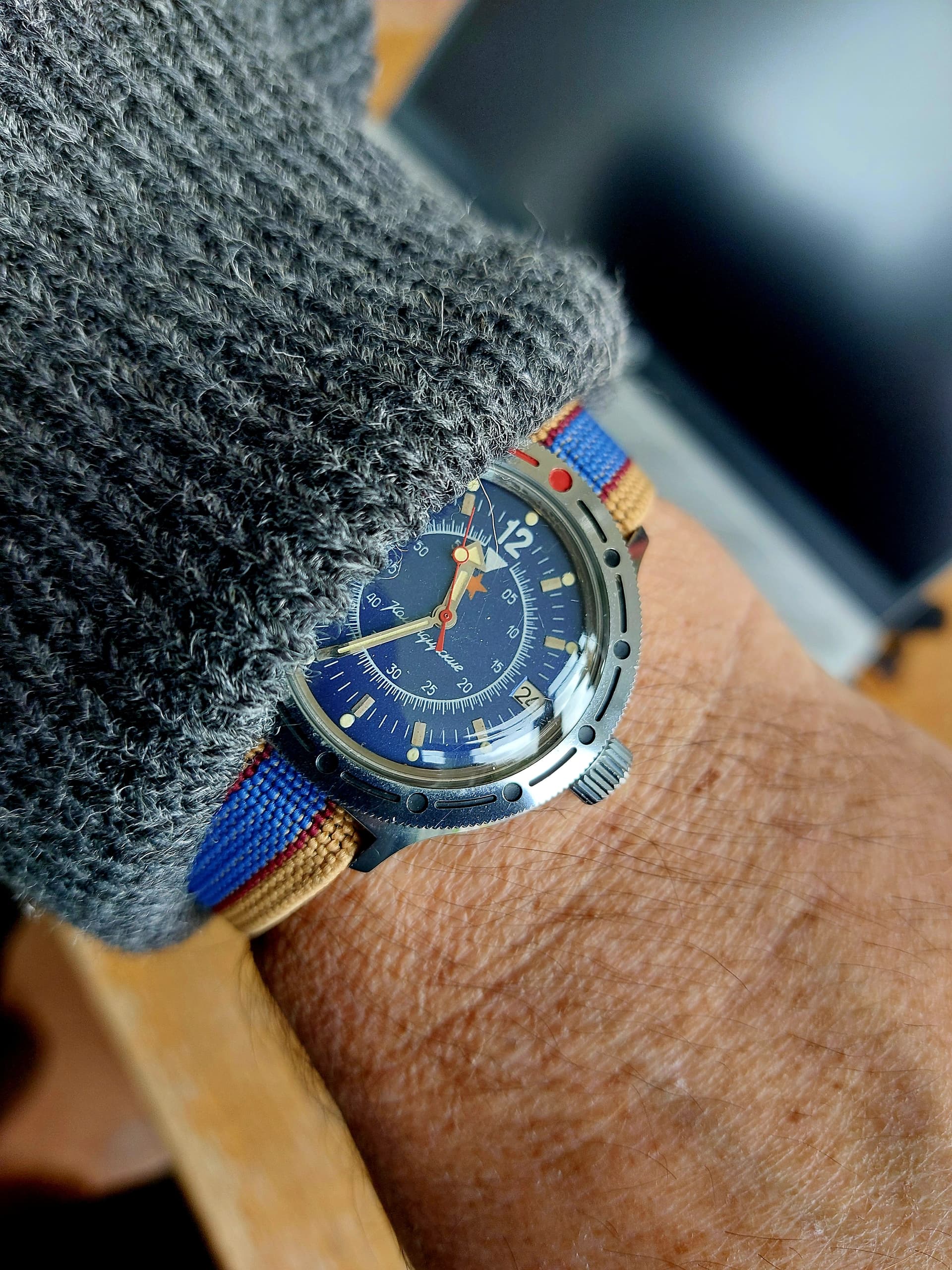 Gisteren binnen gekregen deze Vostok Amphibia Submarine en gelijk om de pols natuurlijk. En ik kan weer met iets anders hier meedoen ![]()