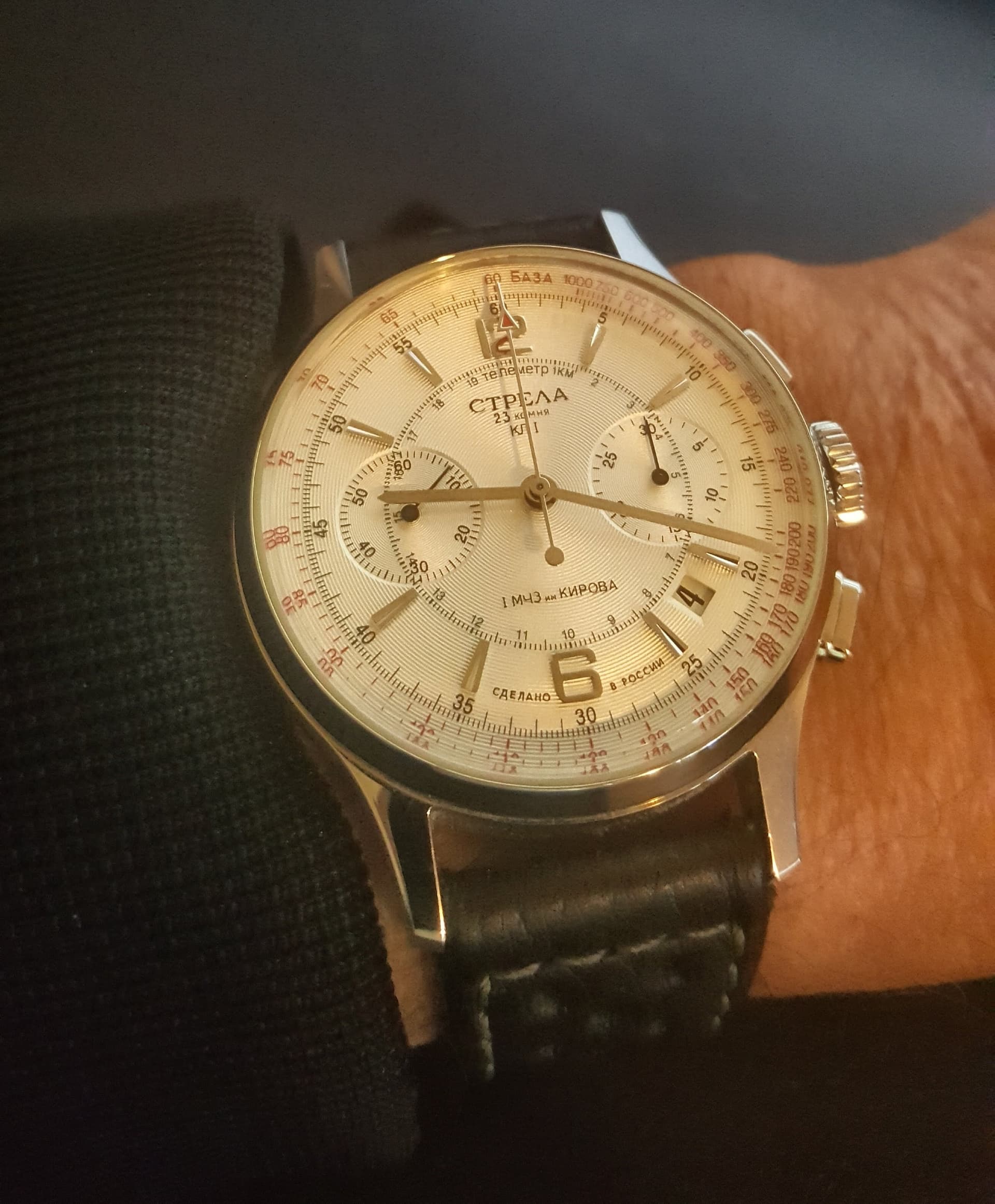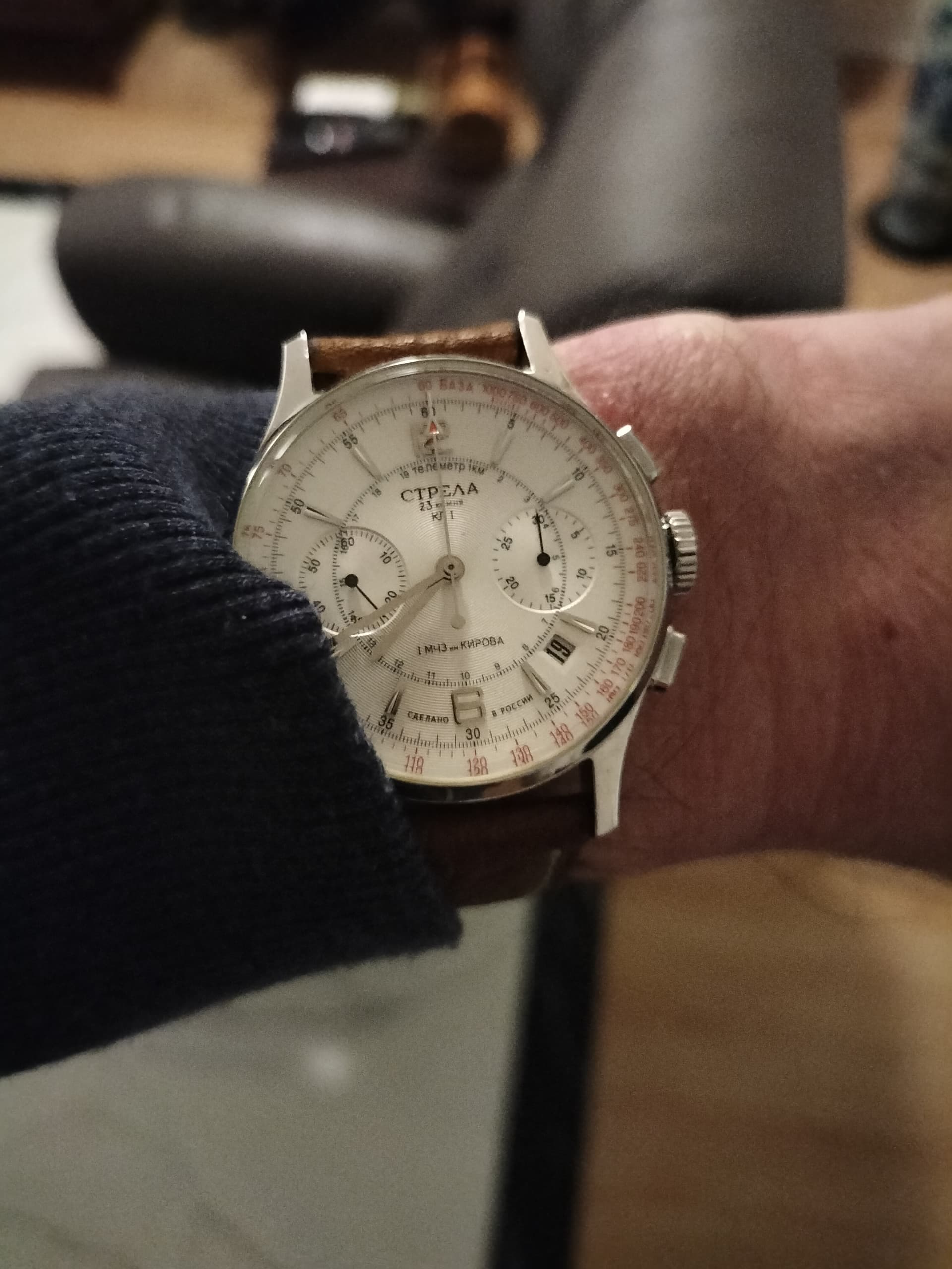 Vanavond lag mijn NA op de mat. Een prachtige Strela chronograaf. Gelijk maar even voorzien van een eveneens NA band. @Omega_73 Jan, nog bedankt voor de tip.