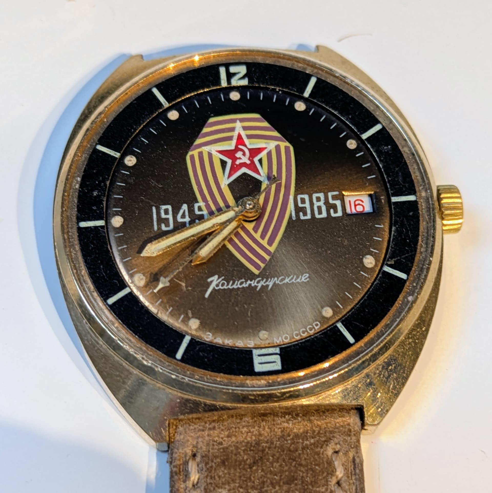Zoals jullie wellicht nog weten is het glaasje van mijn mooie gouden Vostok Komandirskie gesneuveld toen hij van mijn pols viel door een falende springbar.