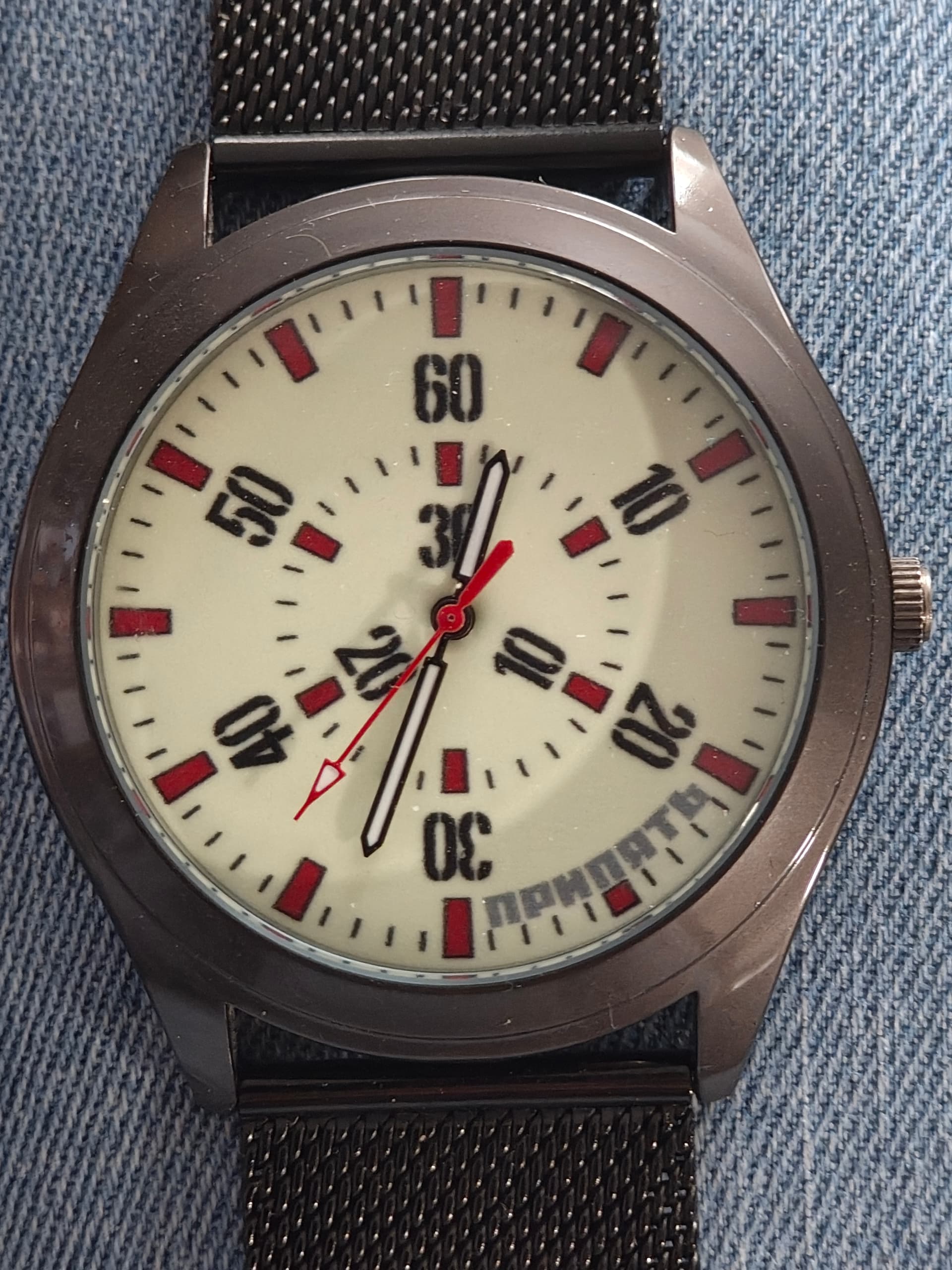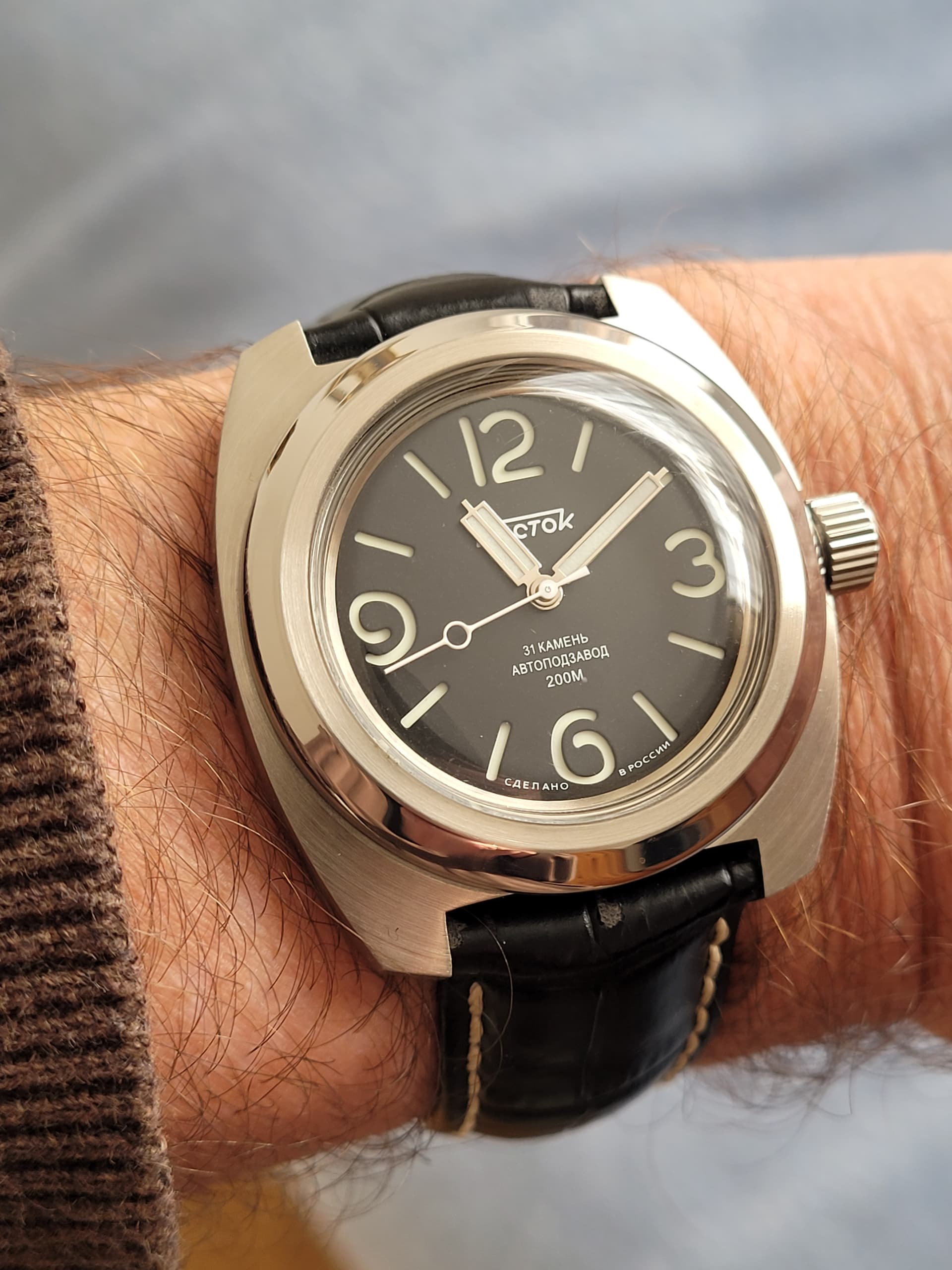 Het is ook mijn meest luidruchtige horloge, je hoort hem aan de pols zitten. Net of er in dat kleine kastje een ouwe communistische smid op een aambeeld staat te beuken.