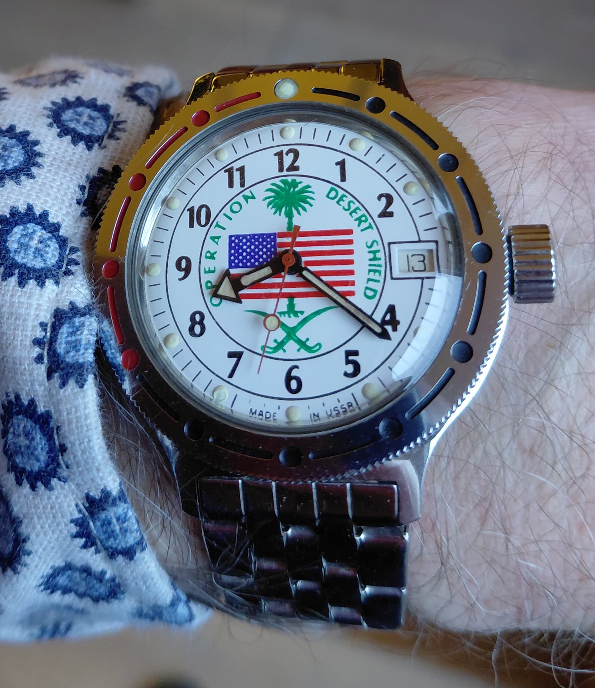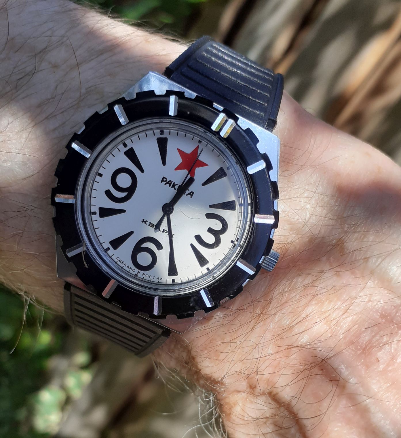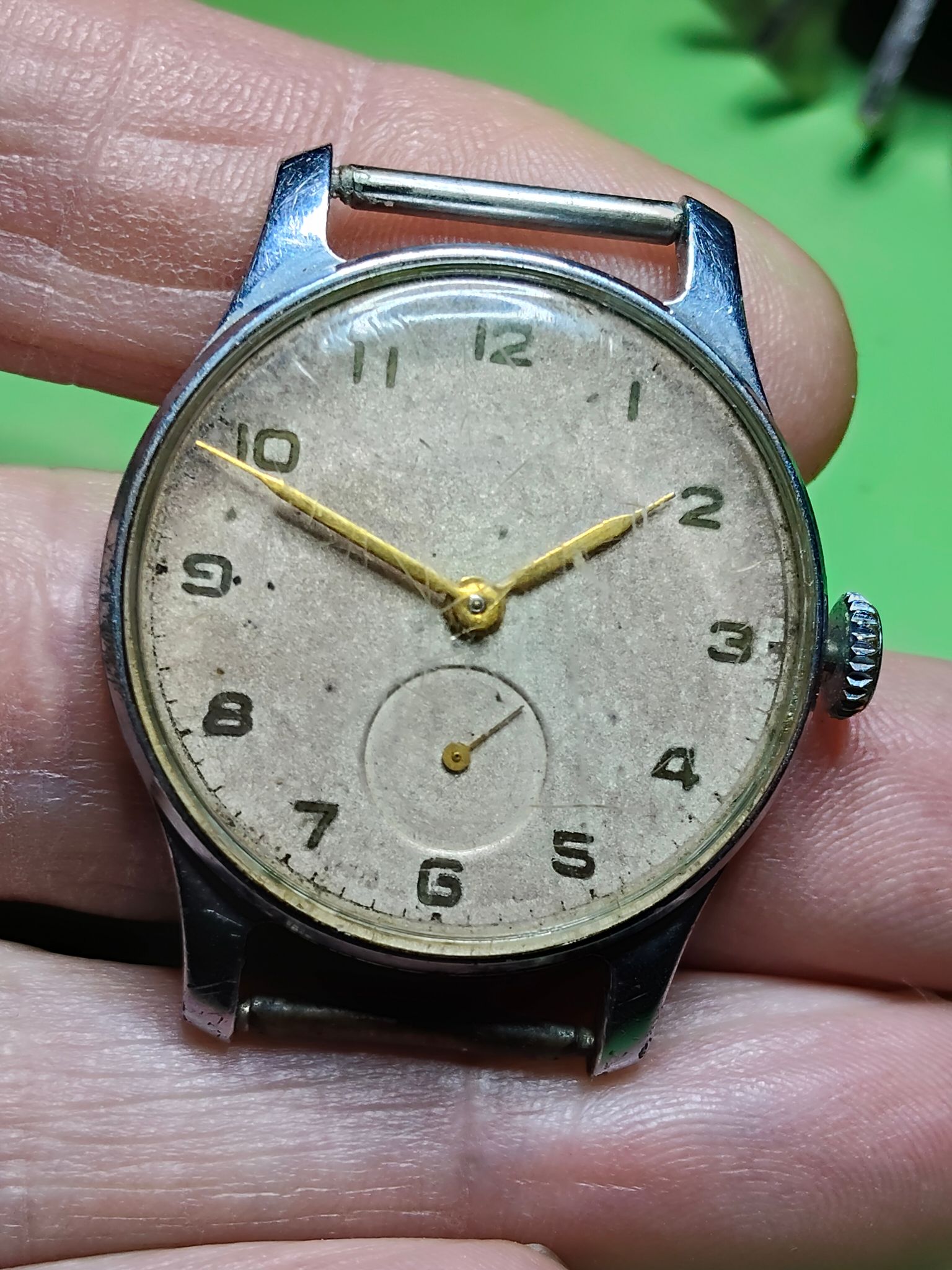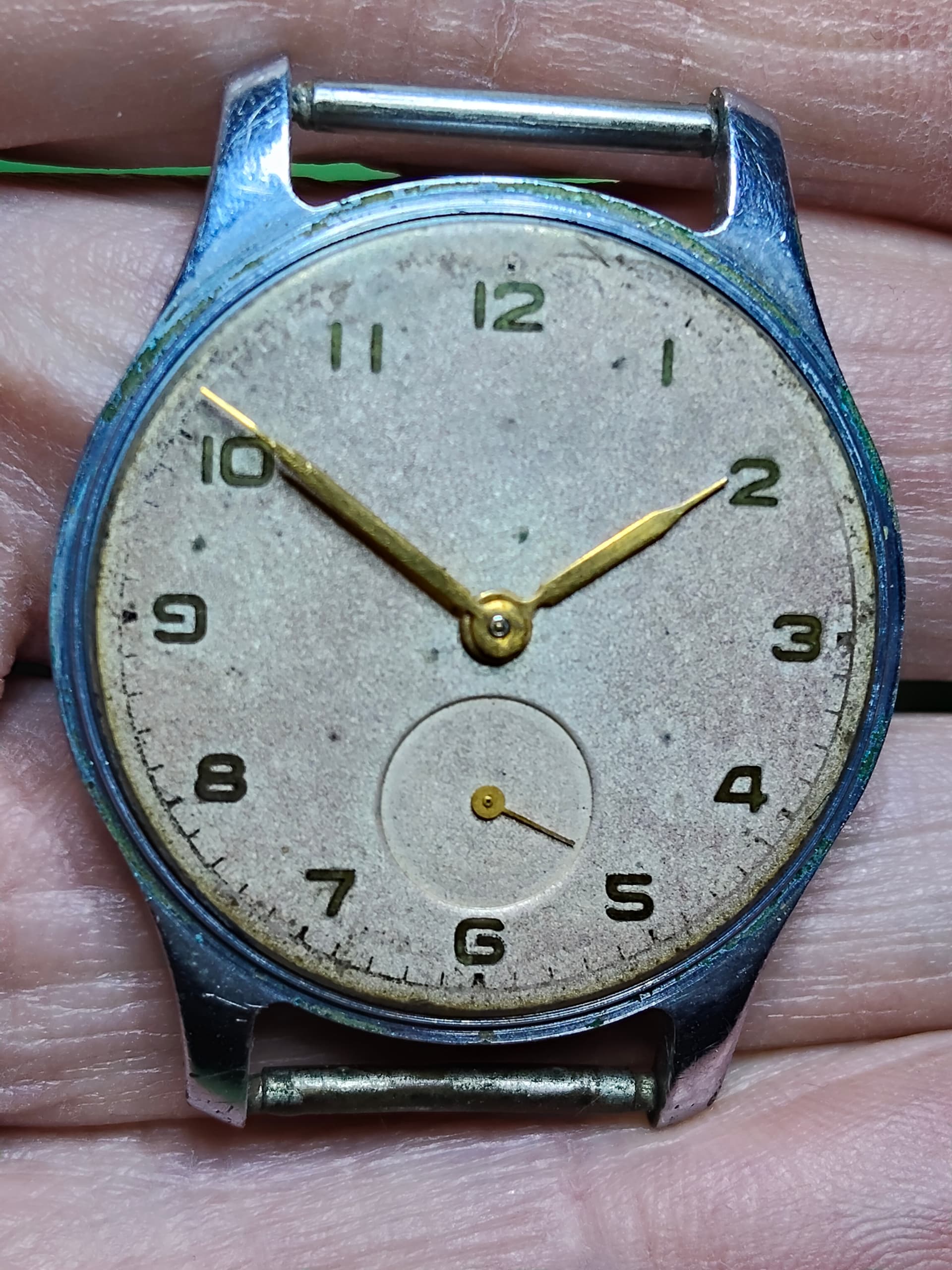 Kwam zojuist dit horloge tegen, ik denk een Pobeda. ik heb de kast even in de ultrasoon gehad en een nieuw bandje aangedaan.