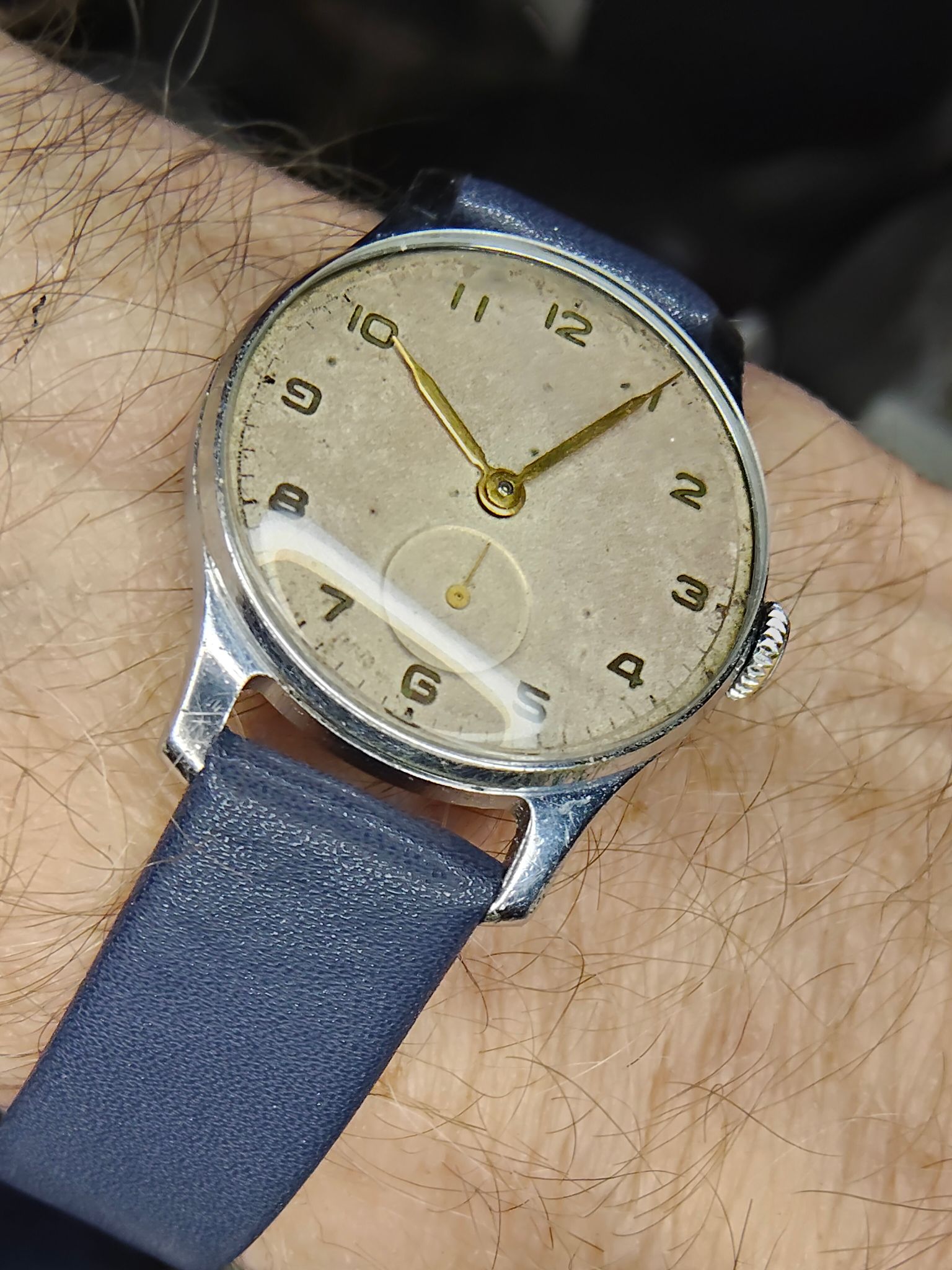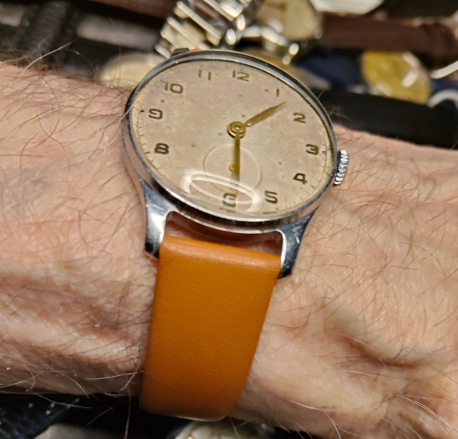 Oude foto en mijn “reserve” Sturmanskie. Zo’n bandje dus. Misschien wel dezelfde, maar hier lijkt hij erg donker. In het echt komt hij mooier bij de grijze plaat. Wordt vervolgd.