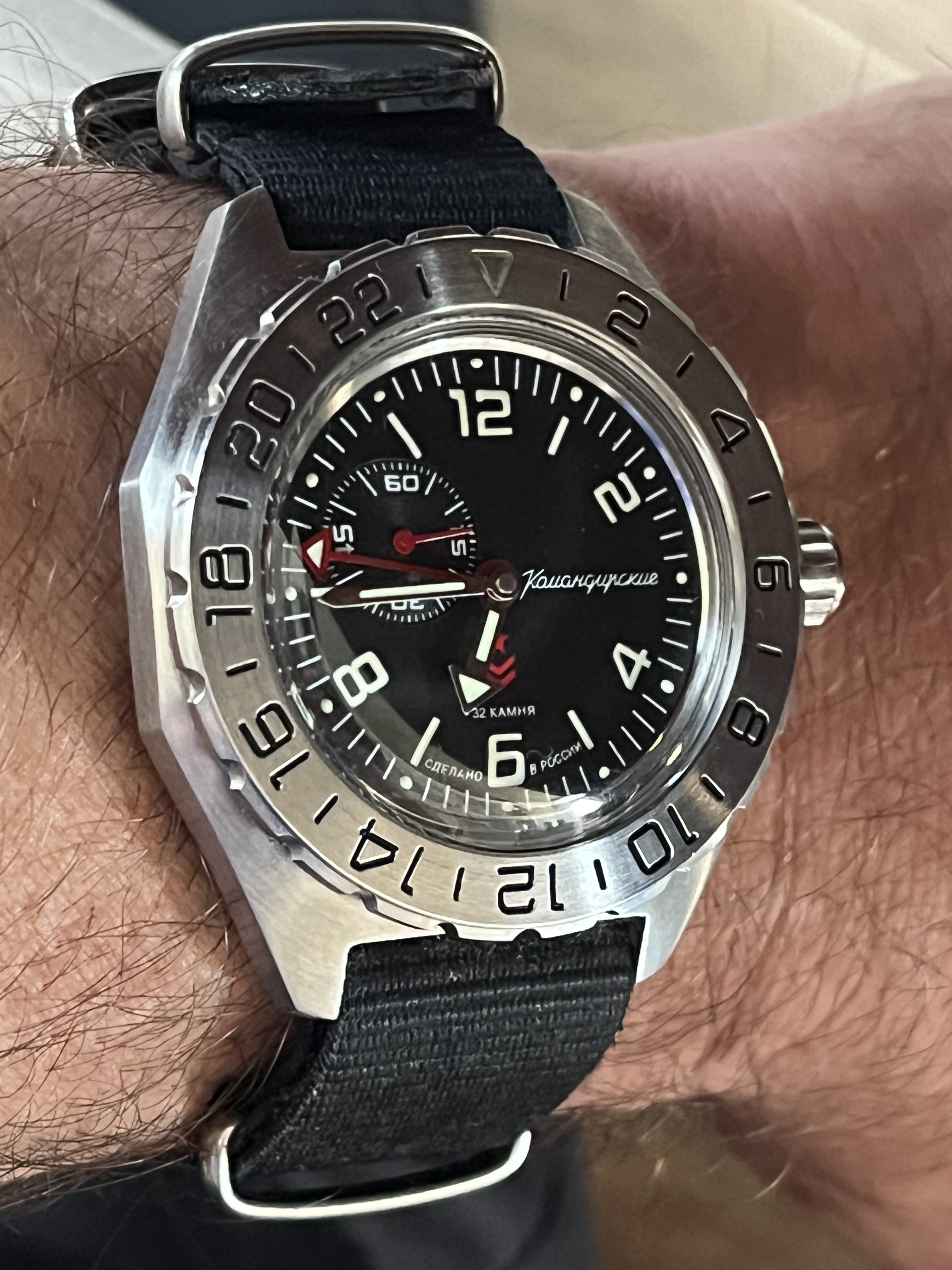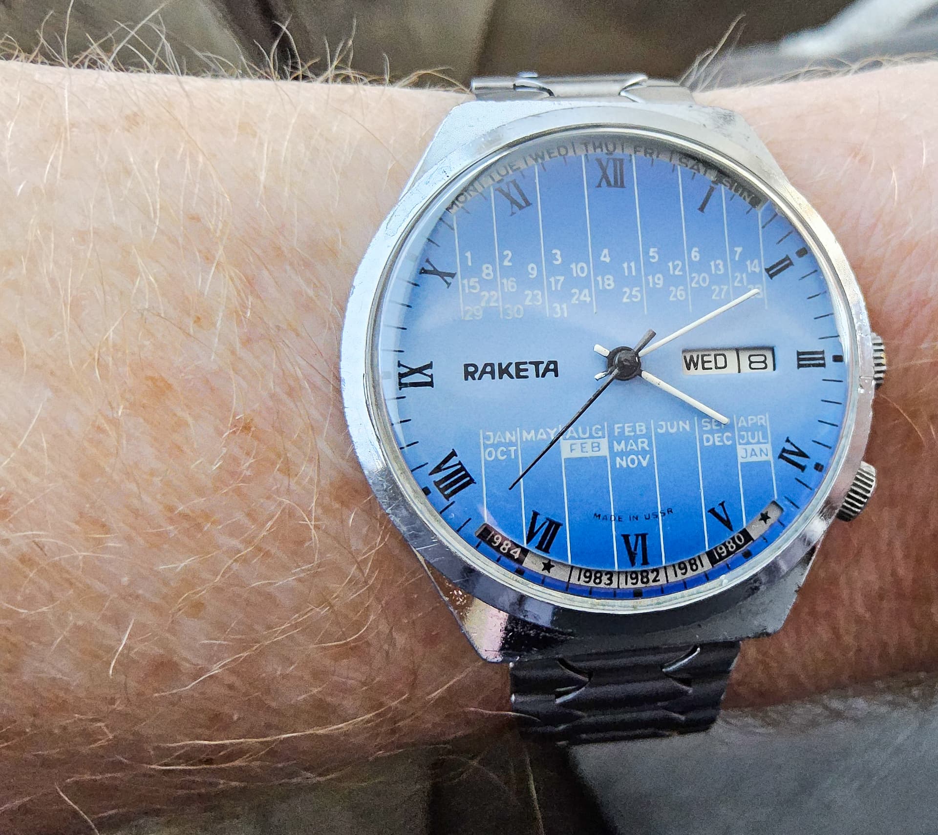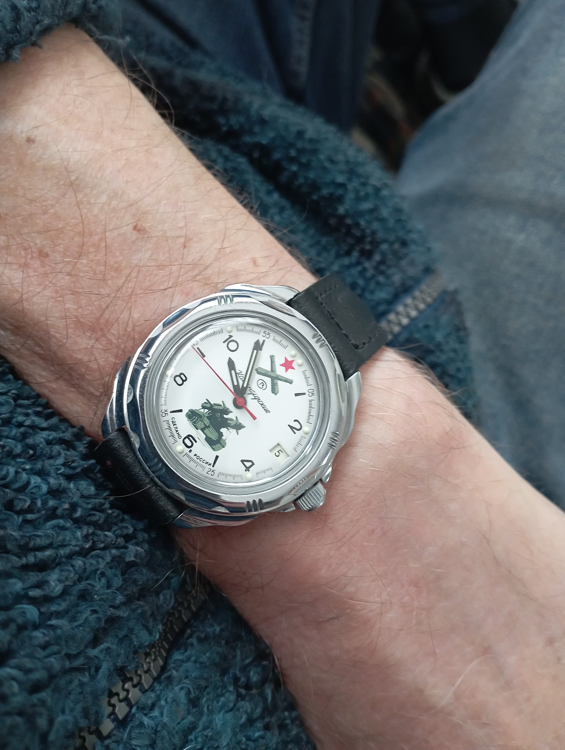, vooral door (de kleur van) de wijzerplaat. Past goed bij de Russen die je al hebt.