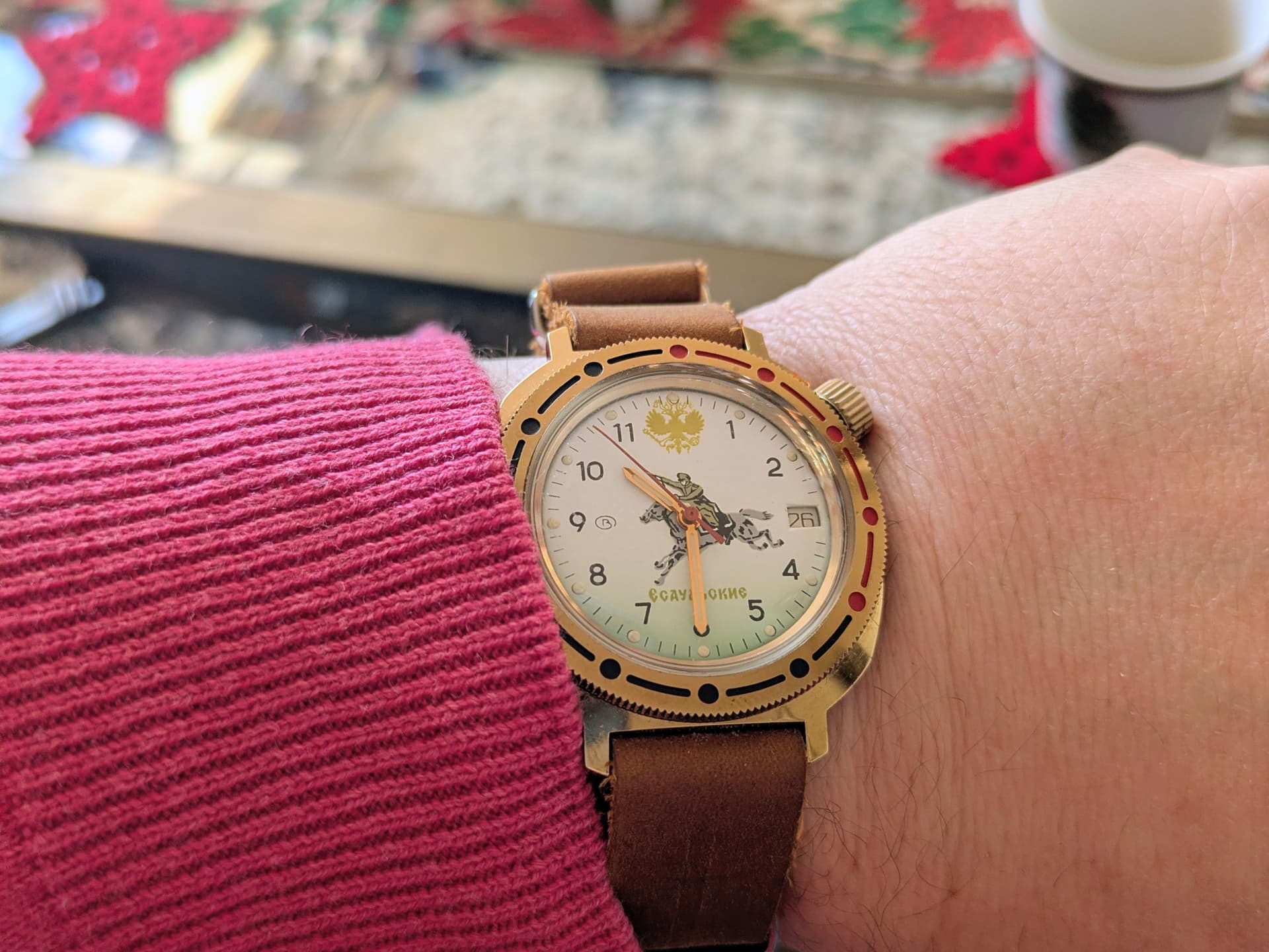 Ik heb niet echt een dressy Vostok dus voor nu heb ik deze om maar ik sluit niet uit dat ik straks iets anders om doe.