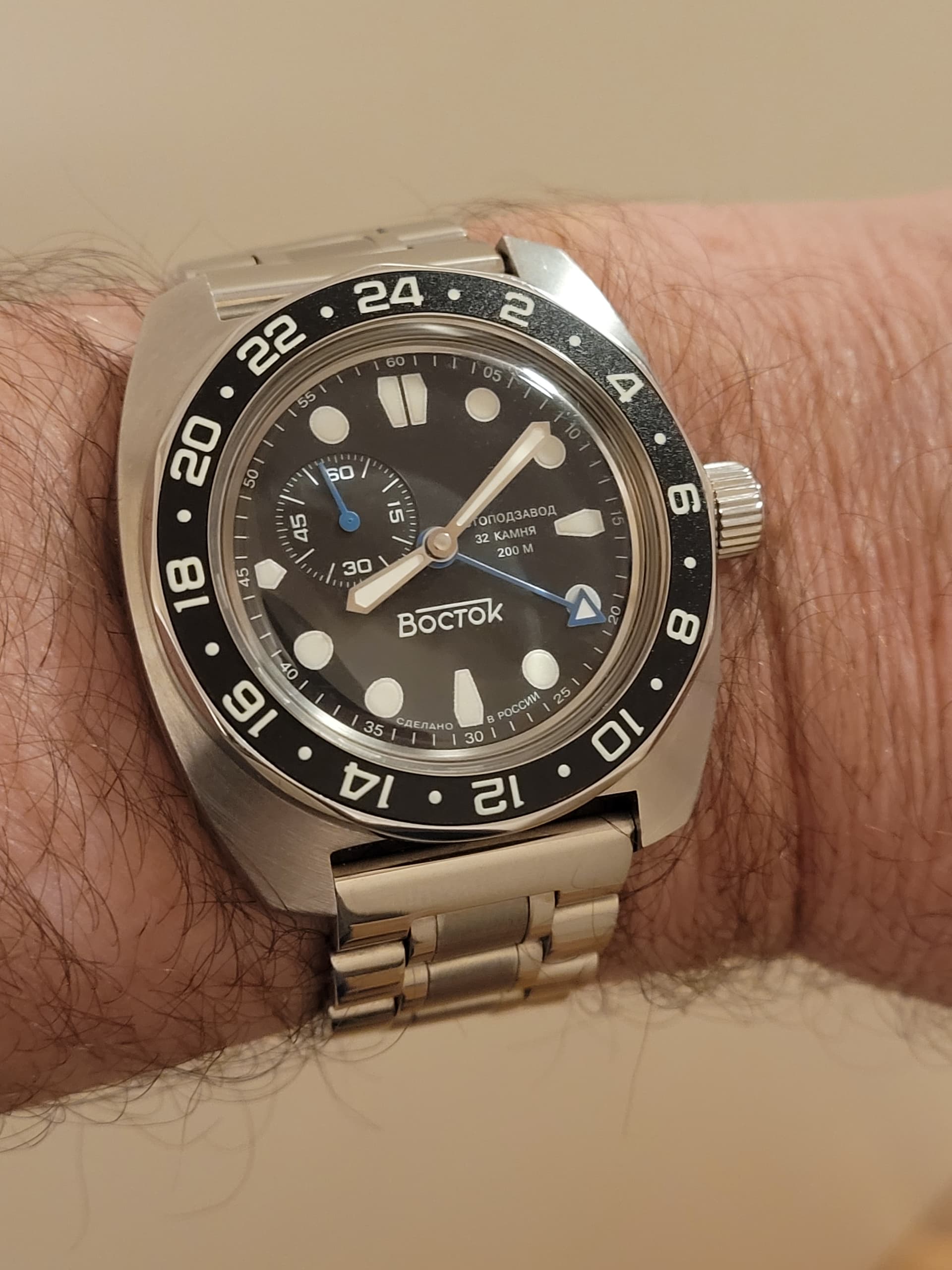 Vandaag een Vostok-mod, gemaakt door @Dao, die ik eigenlijk nooit draag. Waarom weet ik niet, want de wijzers sprankelen je tegemoet. Toch maar vaker om doen.