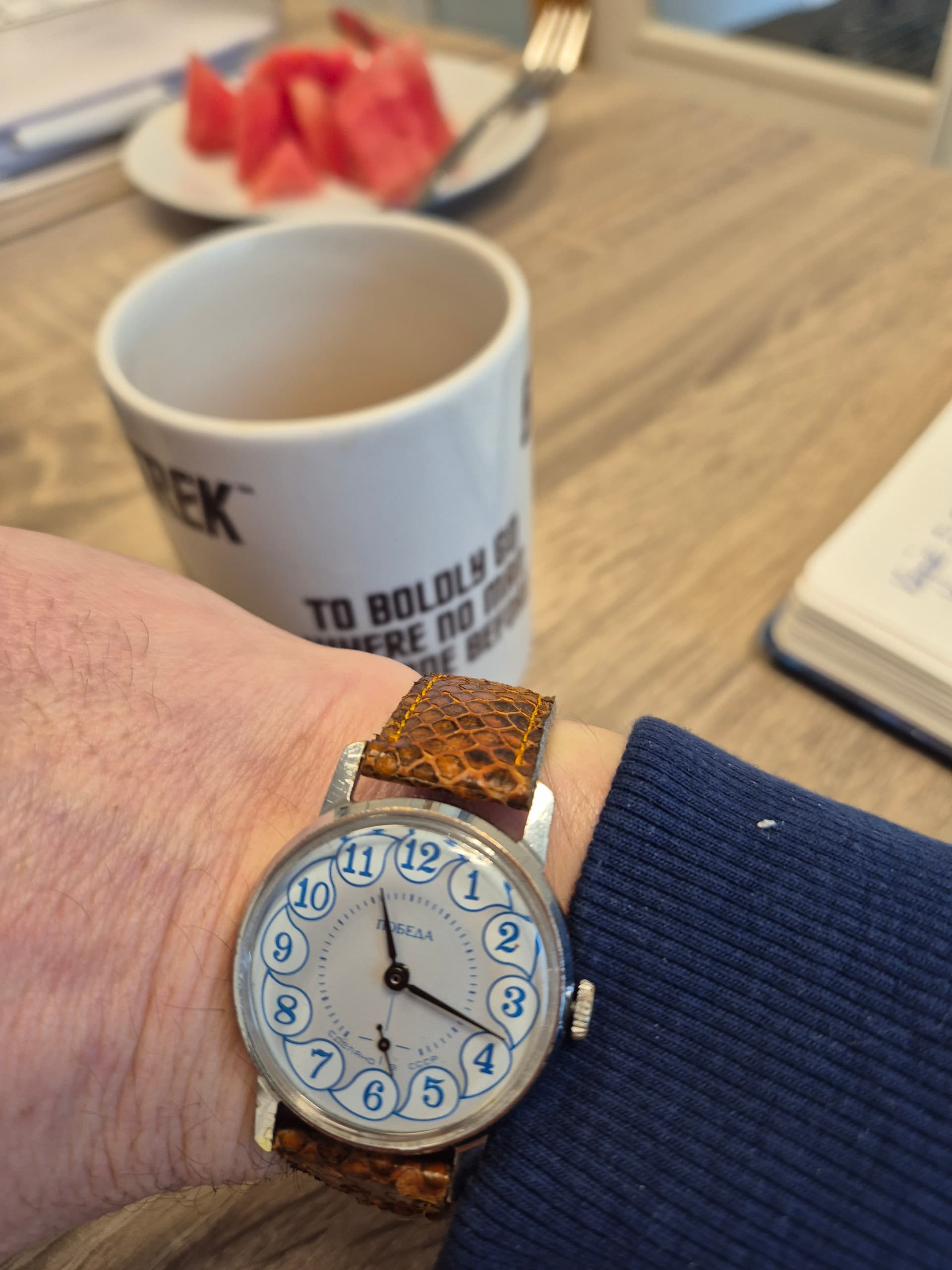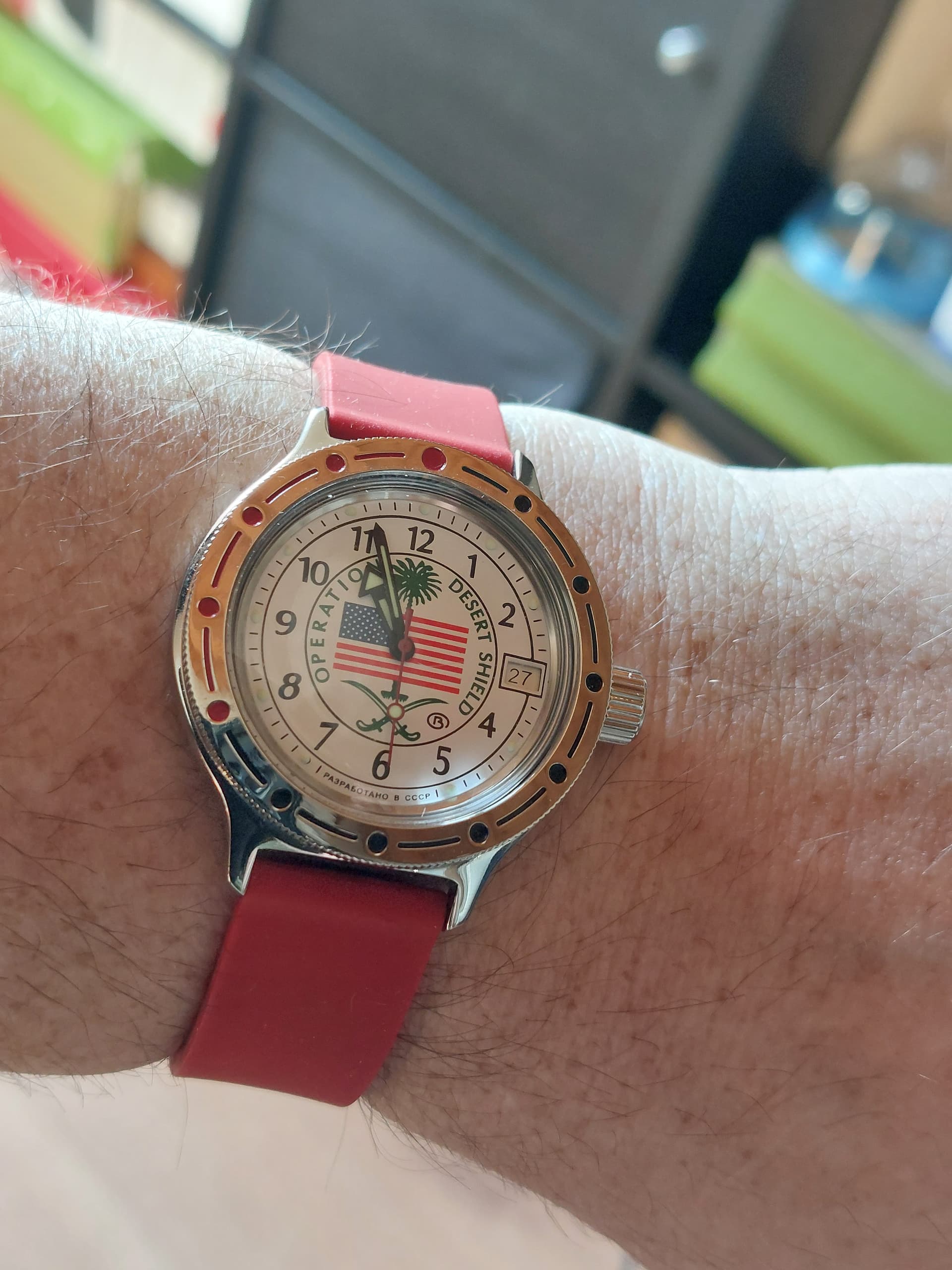 Verder heb ik de Desert maar weer eens uit de kast gepakt. Vreemd, maar in deze tijden draag ik deze, net als sommige zeer nationalistische Rusland-horloges, toch minder graag ![]()