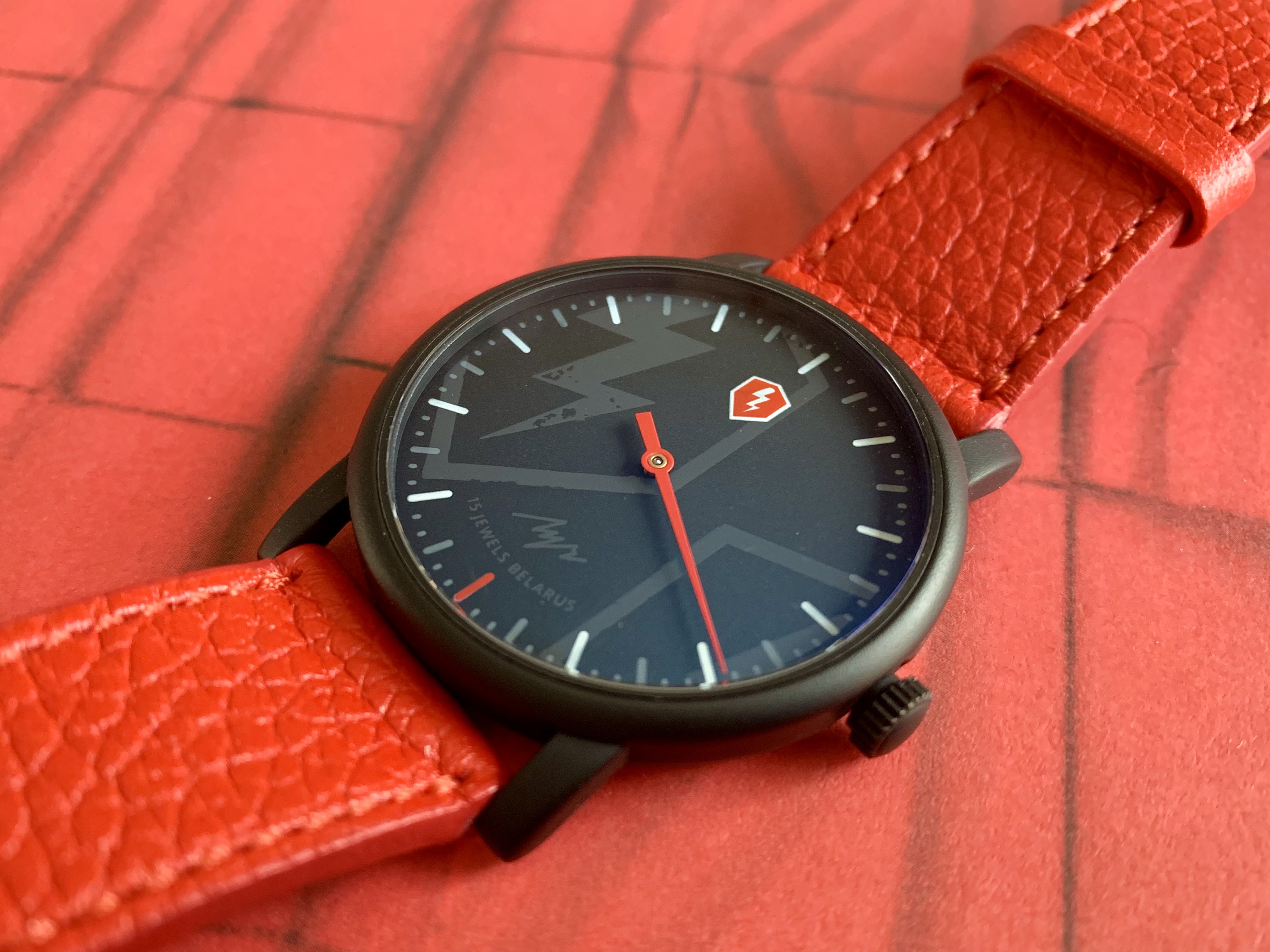 Te koop voor een klein prijsje, een leuke éénhander in vrijwel nieuwstaat. Deze Luch ‘Blitz’ is een limited edition die door fabrikant Minsk Watch Factory werd uitgebracht in het kader van het succesvolle spel ‘World of Tanks’. In tegenstelling tot eerdere Luch horloges van dit type, heeft deze uitvoering een stalen kast met DLC coating en saffierglas, dus een behoorlijke stap omhoog in kwaliteit. Horloge gekocht direct van de fabriek, op een kek lederen bandje gezet (de originele Zulu strap …