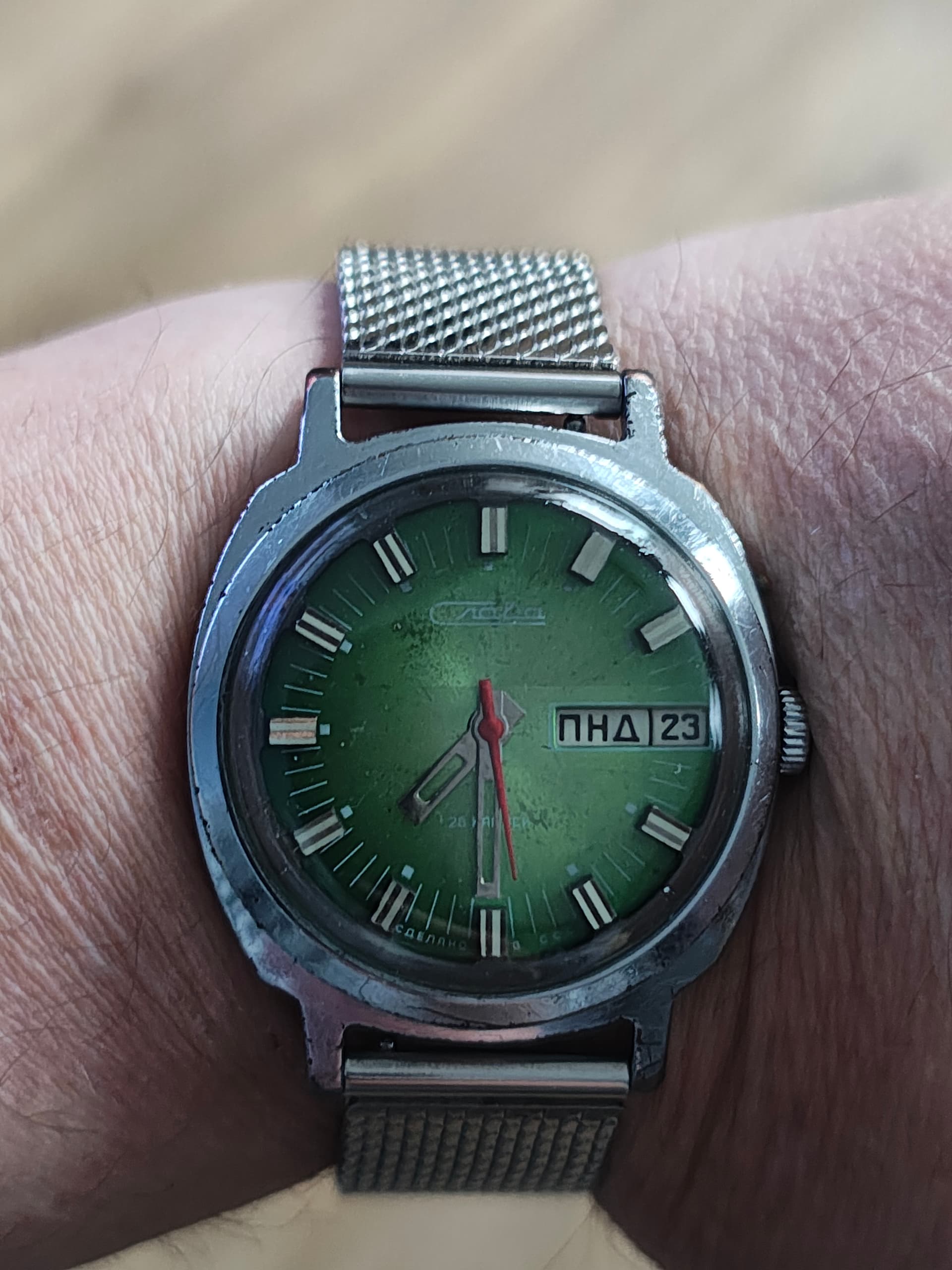caliber: Poljot 3133watchcase: chromeddiameter: 38 mmheight: 12 mmdial: white
