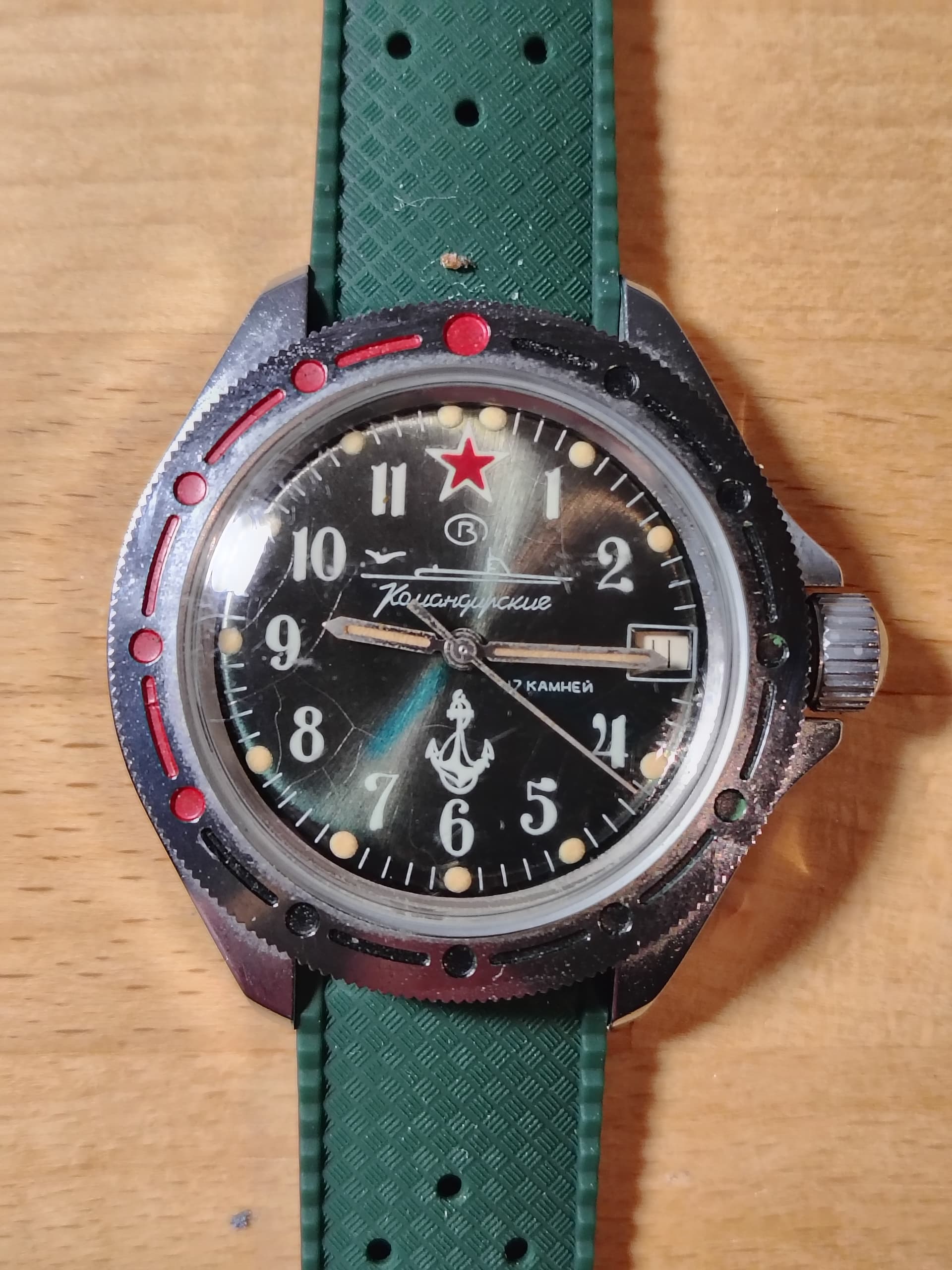 Hier is ie dan op groen rubber, had deze band nog liggen, staat prima bij de wijzerplaat toch?