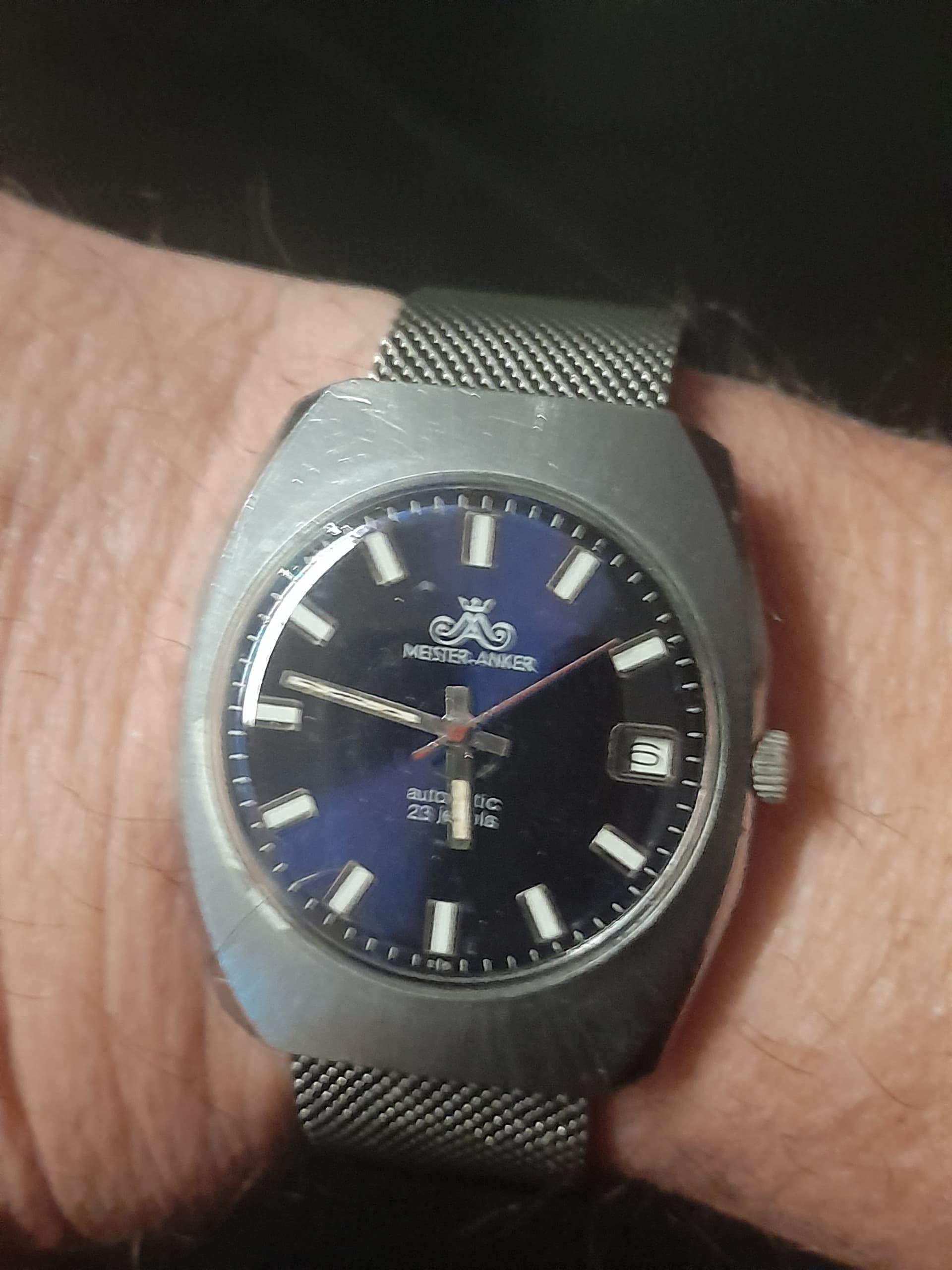 Grappig, Prim leverde ook voor Meister Anker, en had die identieke set wijzers ook voor heel veel eigen modellen. Maar die hadden geen automaat. ![]()