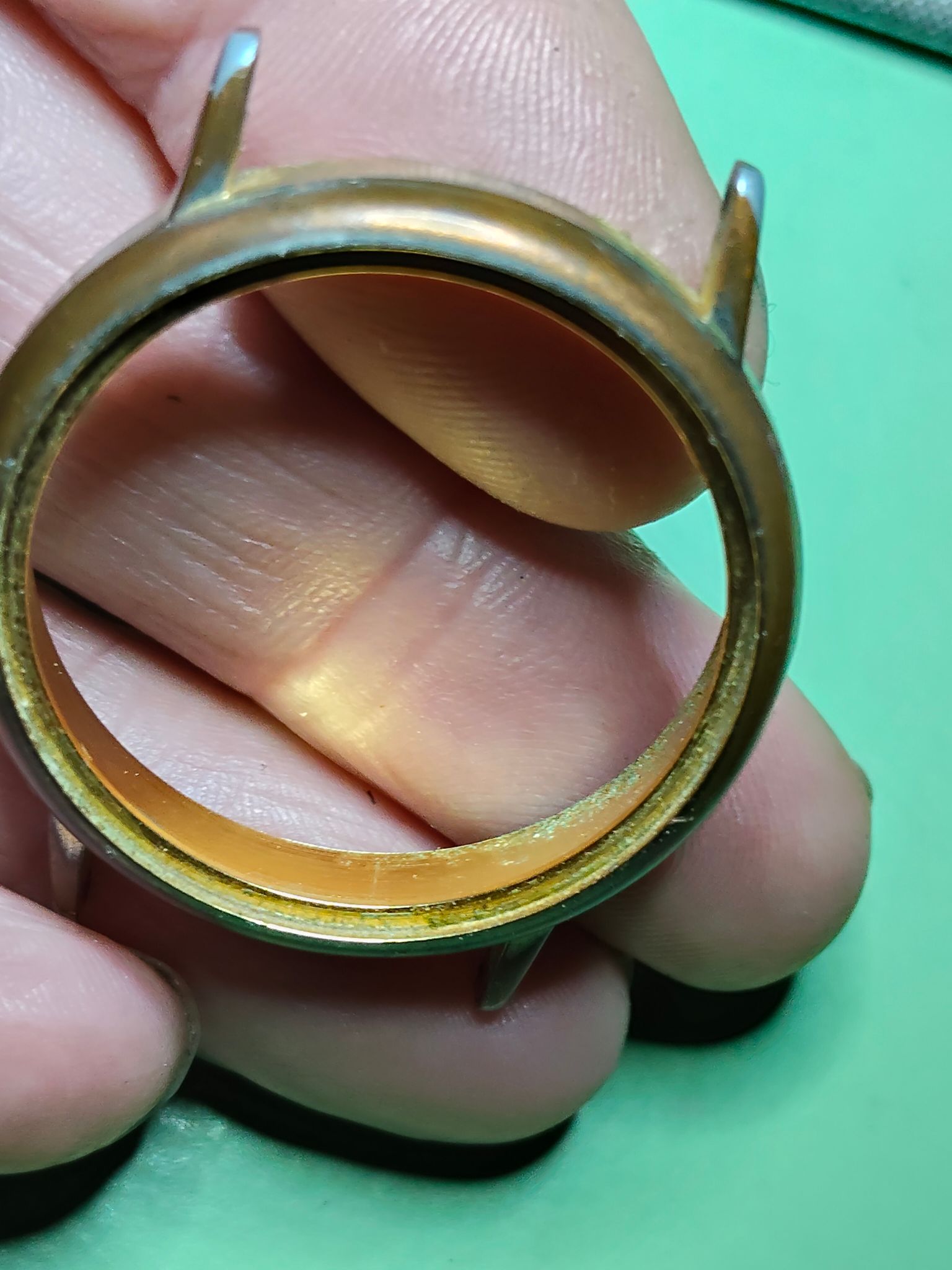 Ik heb eerst dit horloge aangepakt. Ik weet niet wat dit voor een laag is, dus even de laag eraf gehaald. Ik zag een goudkleurige bezel. Ik heb het daarna een metaalachtige kleur gegeven.