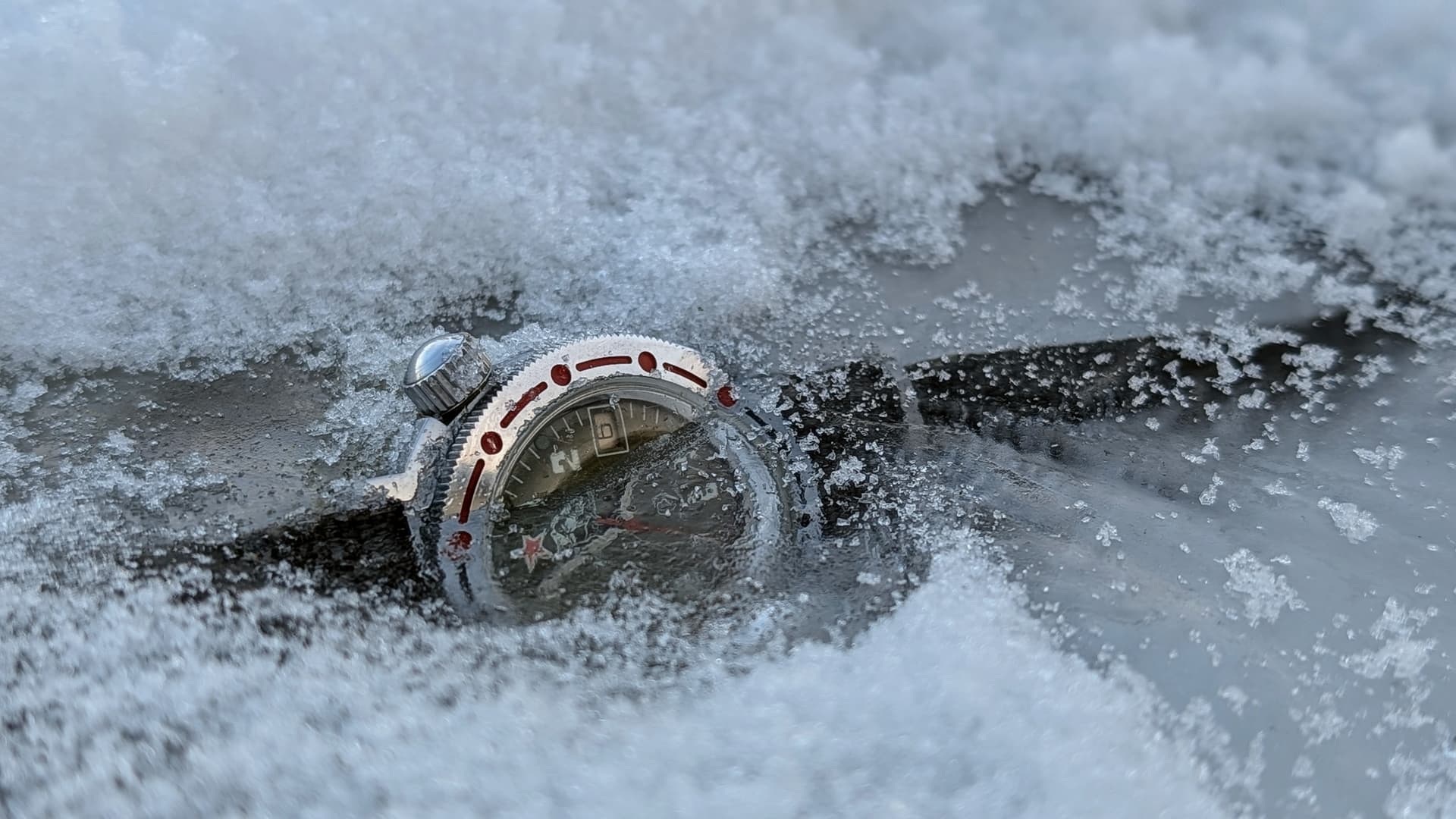 Ik heb vandaag vanwege het weer een andere 300m omgedaan, het meest clunky, massieve horloge dat ik kon vinden.