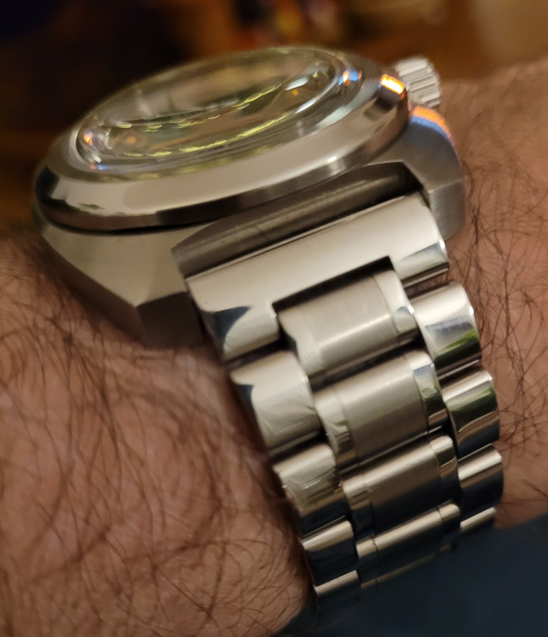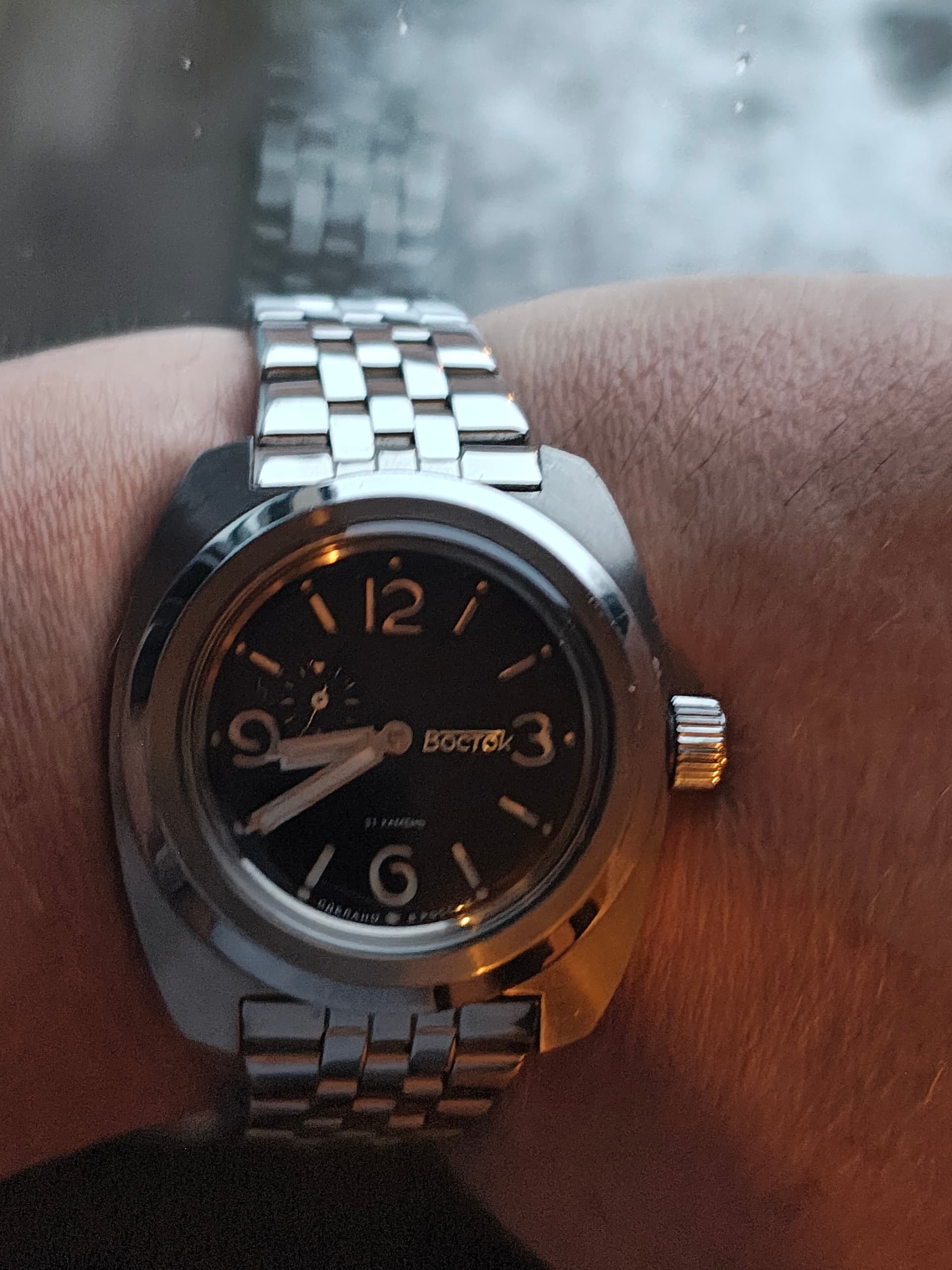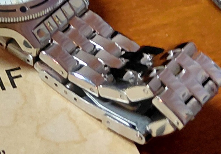 Het valt mij op dat de meeste originele Vostok banden rammelbanden zijn simpelweg omdat er veel speling tussen alle schakels zit. Maar juist daardoor plooien de schakels zich mooi naar de vorm van je pols en draagt ie comfortabel. Dat is tenminste mijn gevoel…