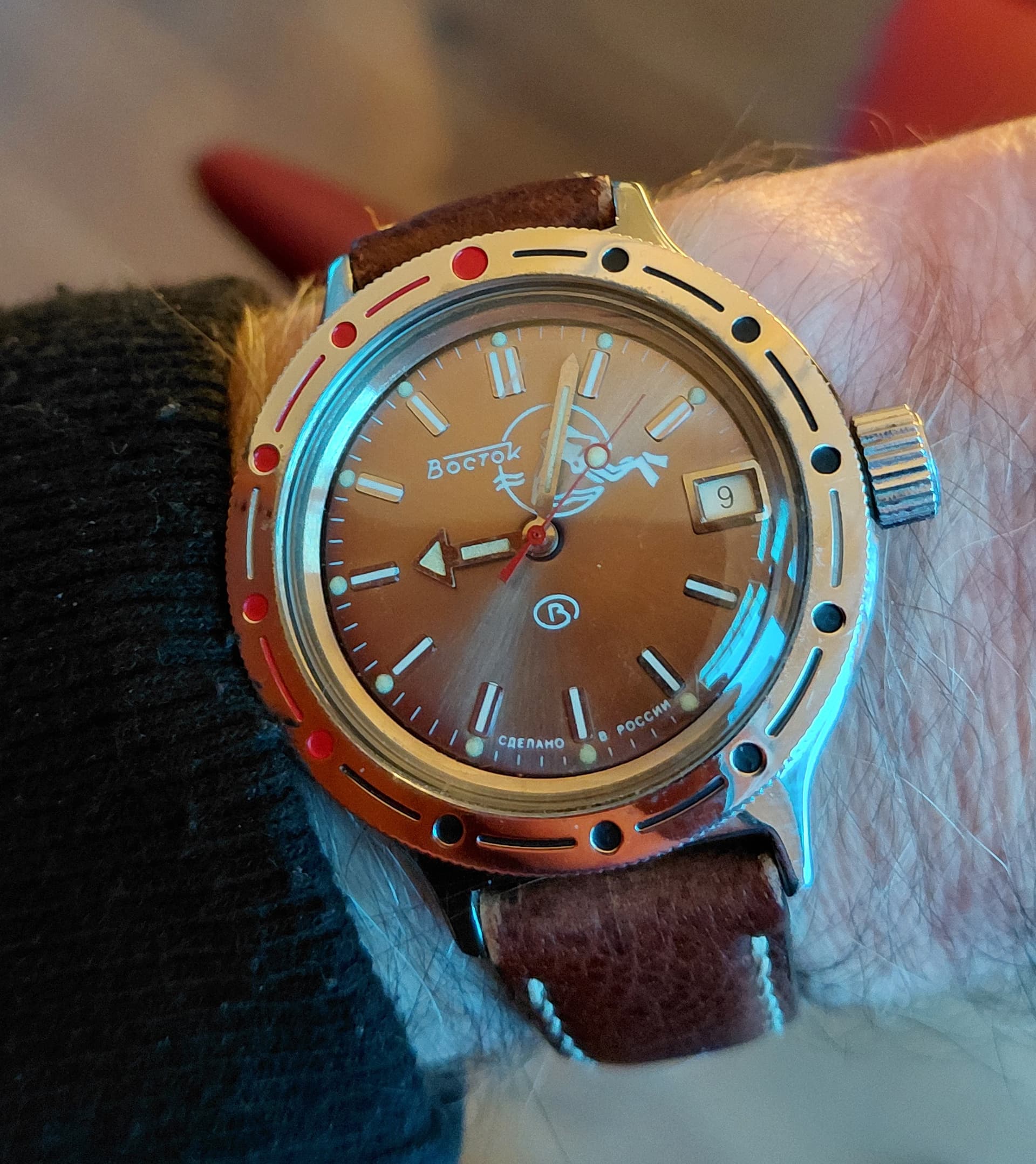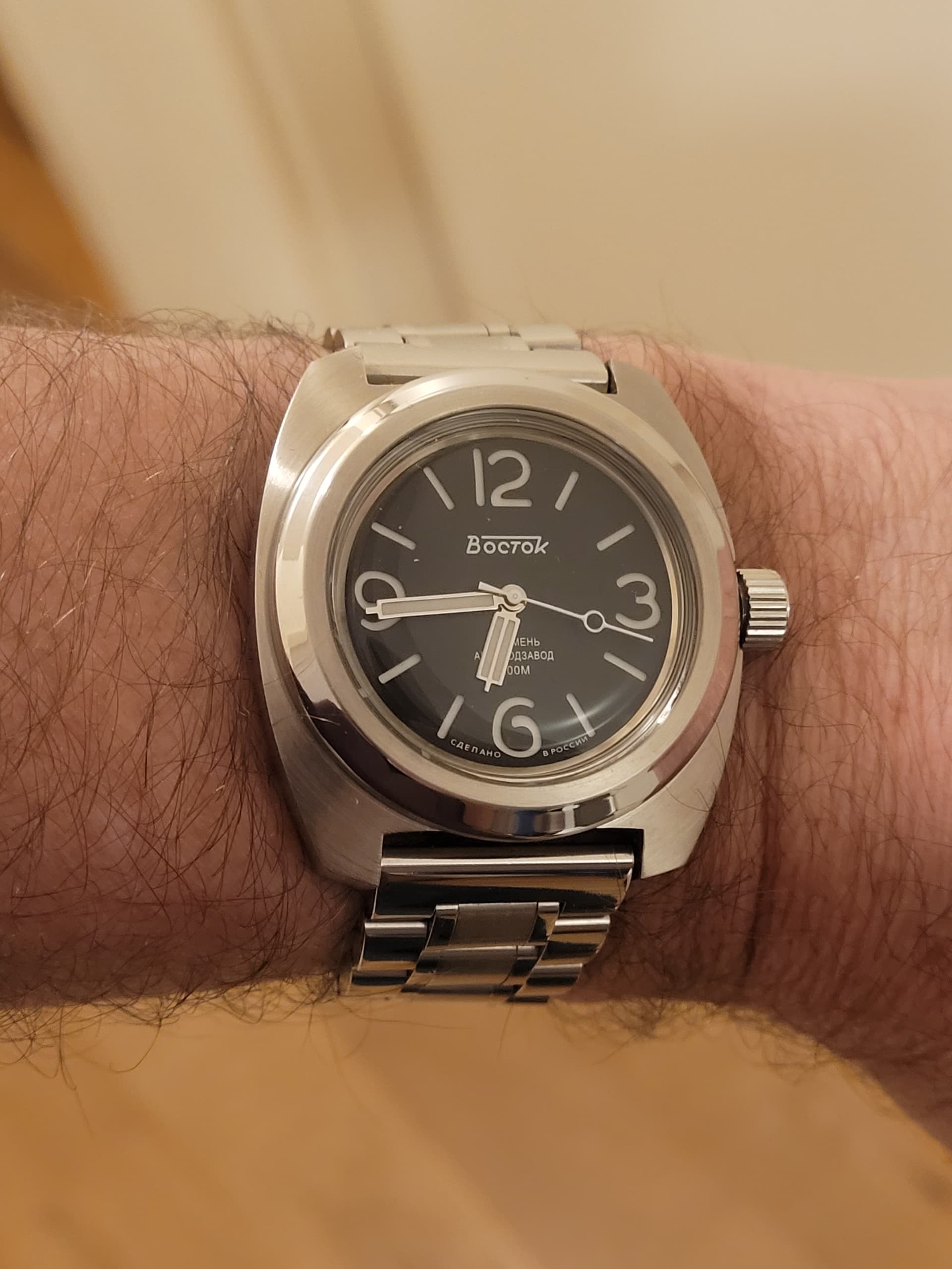 Deze semi rammelband met vlinder sluiting (ja ja, dat kunnen de Russen best goed maken) draagt ook erg comfortabel.