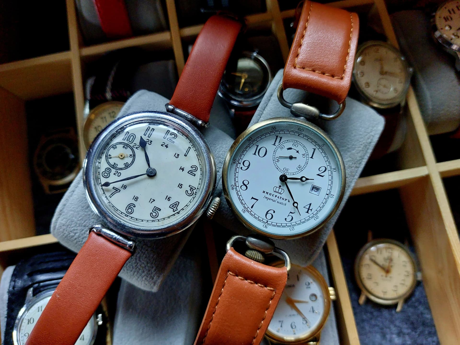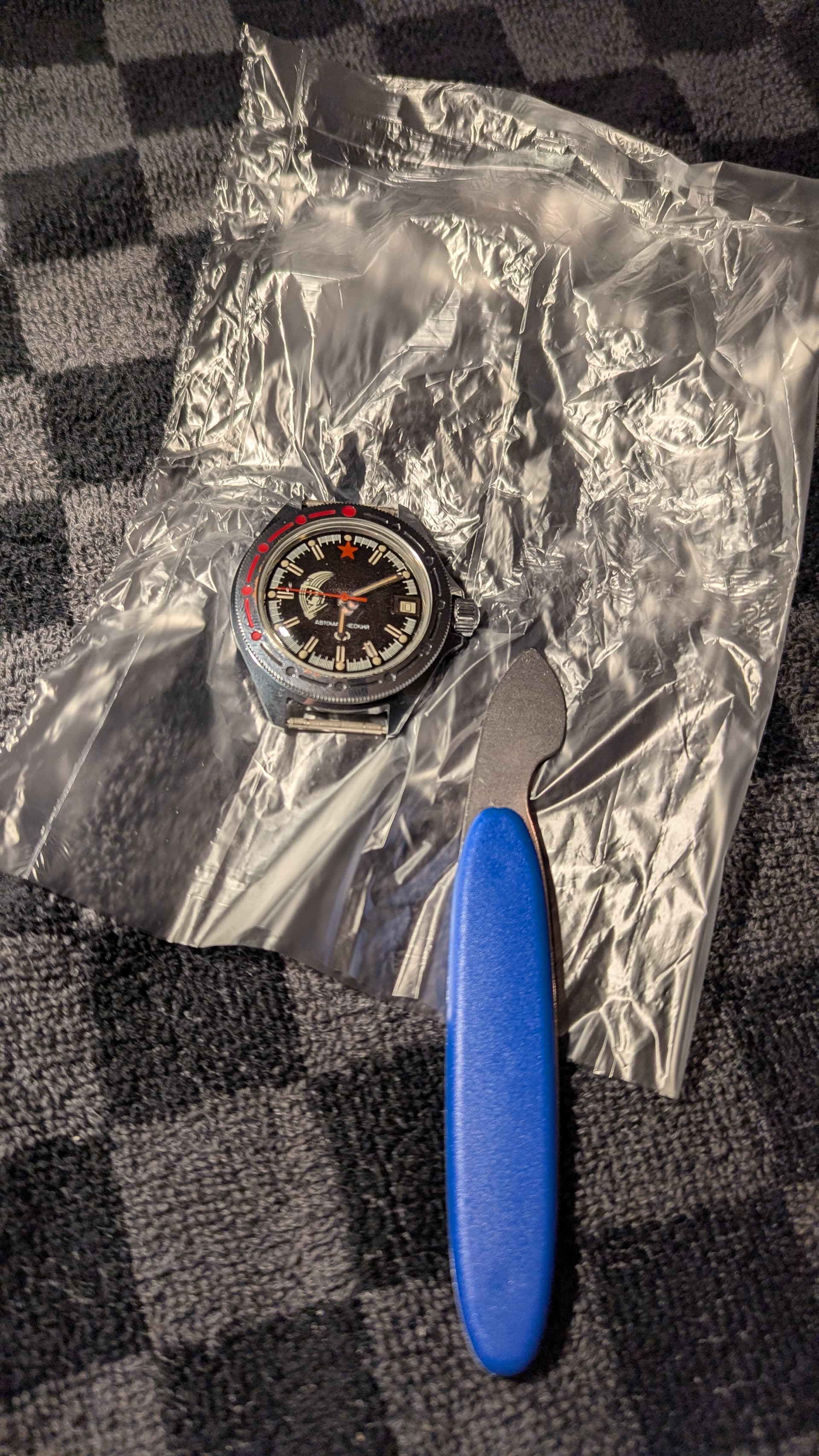 Van oranje naar het rood, wit, zwart van een Raketa-quartz. Zojuist uitgepakt, nadat Bas, @BG1, het bomproof verpakt verzonden had.