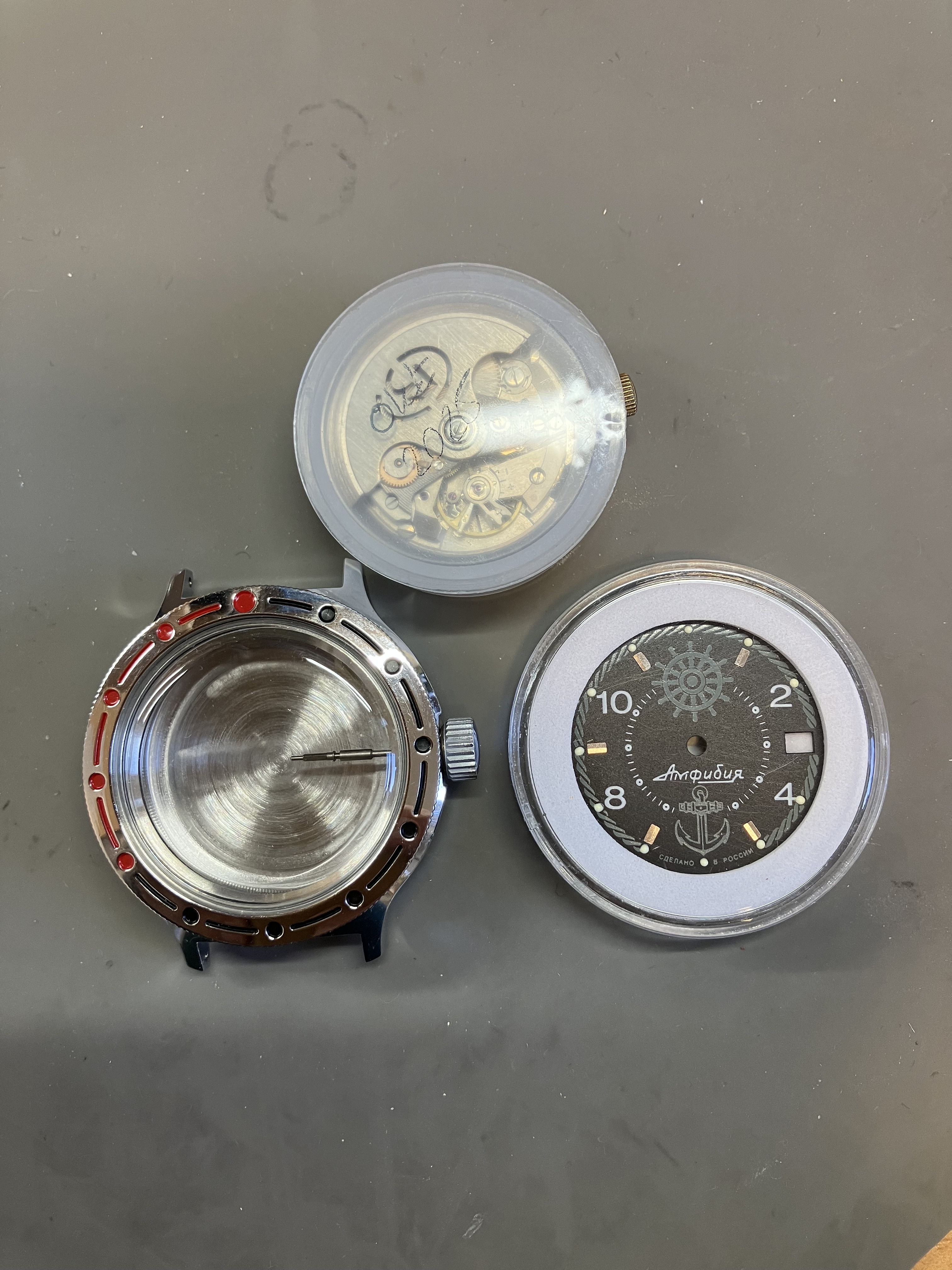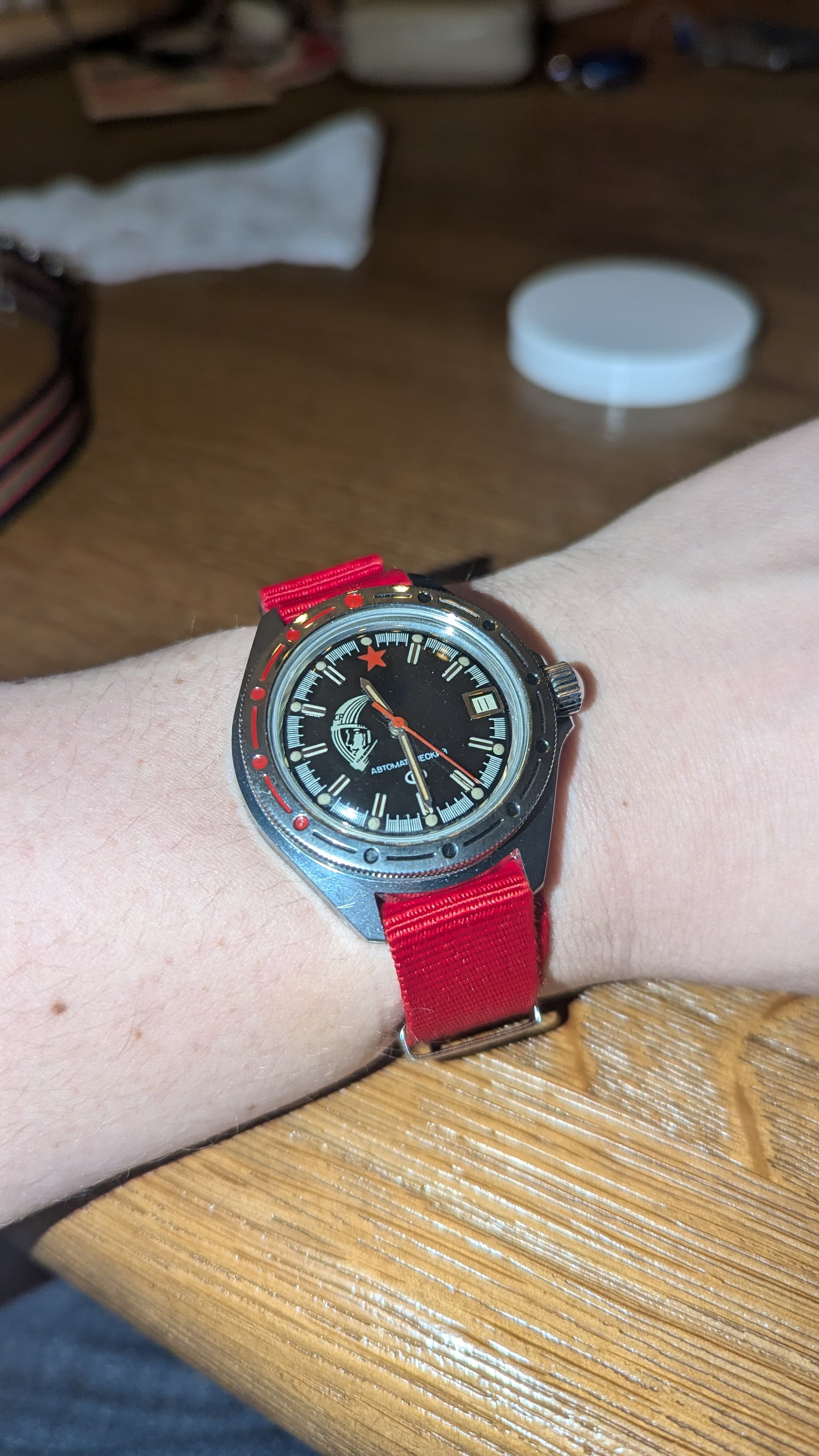 Ik had al een look a like rubber ribbel band zoals in de Zissou film. Alleen de Vostok nog. Maar de band brak. Verouderde kunststof denk ik. Toen strandde het project, om in zeevaart termen te blijven.