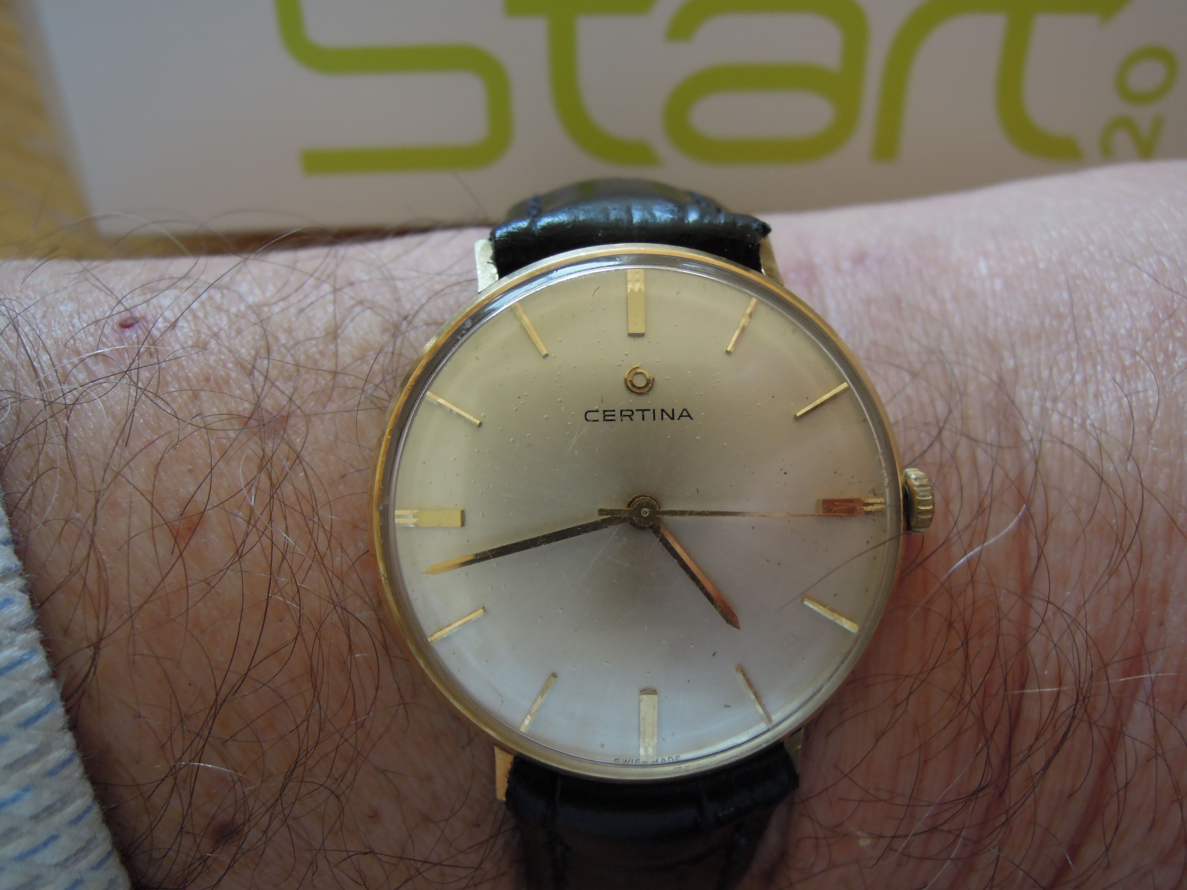 Net als saensgroen en Werner hierboven! Ik mocht dit horloge ontvangen bij de verdeling van de spulletjes van mijn vader. Wist ik veel! Het klokje heeft een jaar of achttien onderin de la gelegen, totdat ik enige belangstelling begon te tonen voor horloges. Een keer zag ik er zo een op Catawiki. Verrek, dacht ik, 't zou toch niet … En of, wel zeker, ik had er ook zo een. M’n mond viel wijd open. Enfin, binnenkort laat ik de Certina servicen. Dat is het mij zeker wel waard!