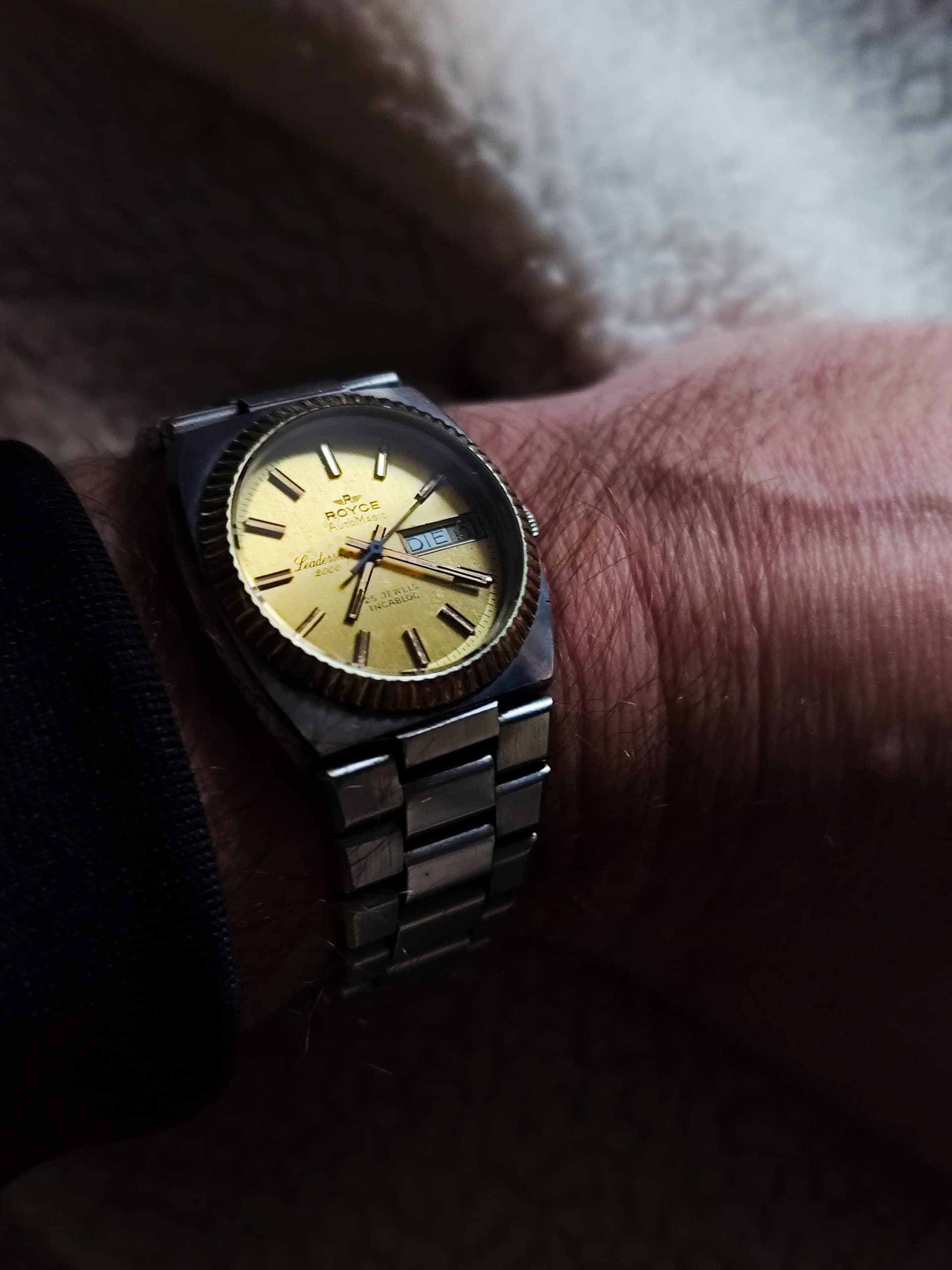 Bij dit horloge krijg ik spontaan de behoefte om bakkebaarden en een pornosnor te laten staan. Overhemd met extreem grote kraag over een leren jackie en gaan