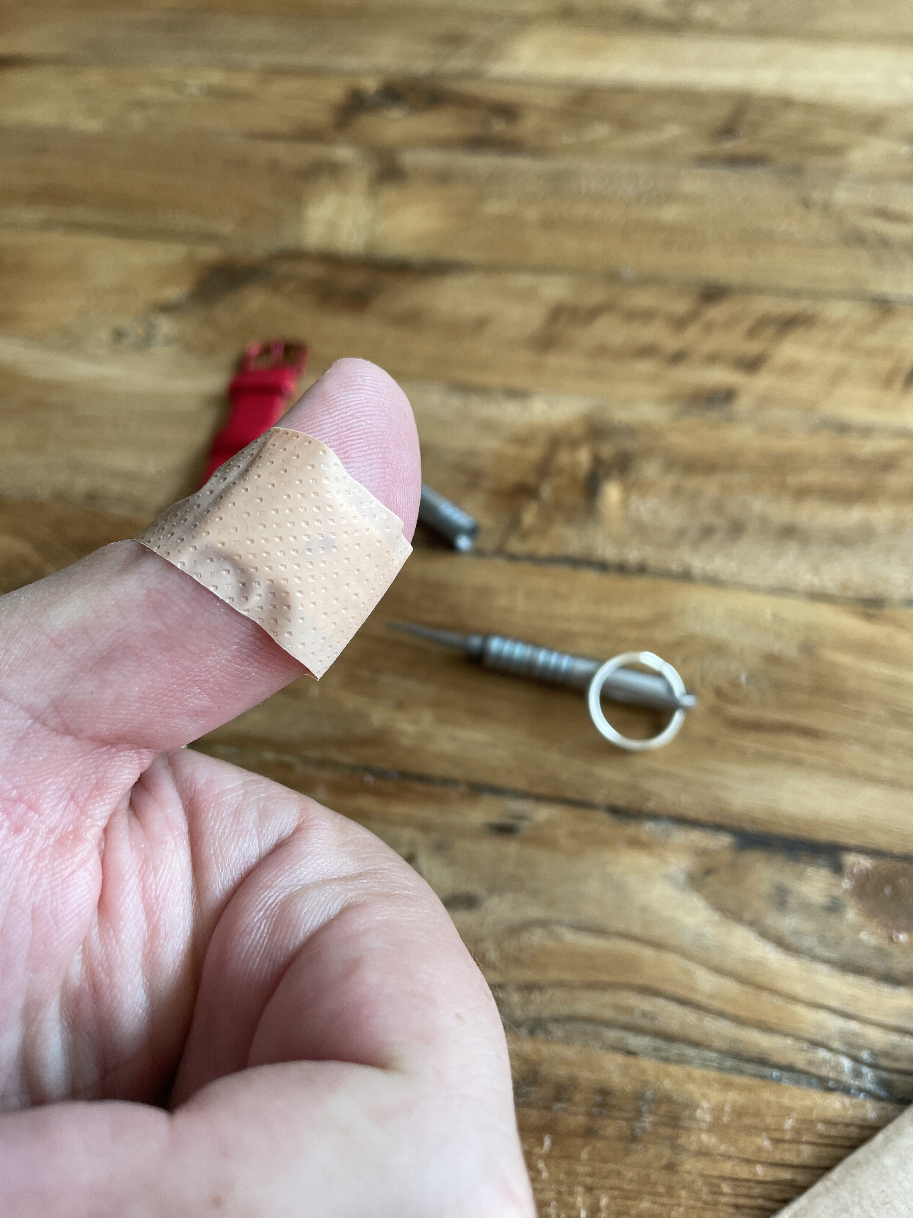 Ok, iets voorzichtiger dan maar en voila, een paar tellen later zit het nieuwe bandje er op. Benieuwd naar haar reactie als ze straks thuis komt van school.